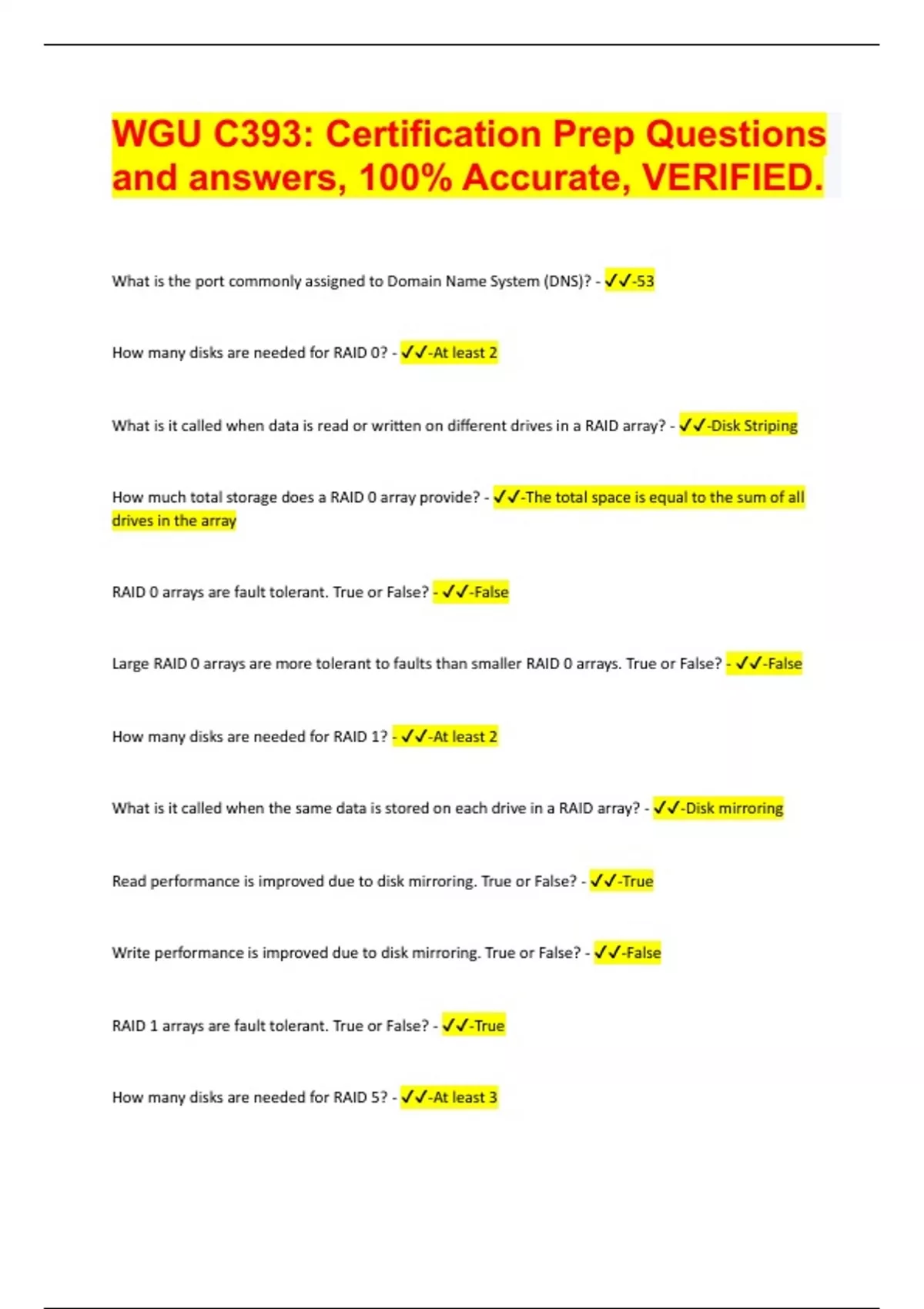 WGU C393: Certification Prep Questions and answers, 100% Accurate, VERIFIED 2024 | 27 Pages