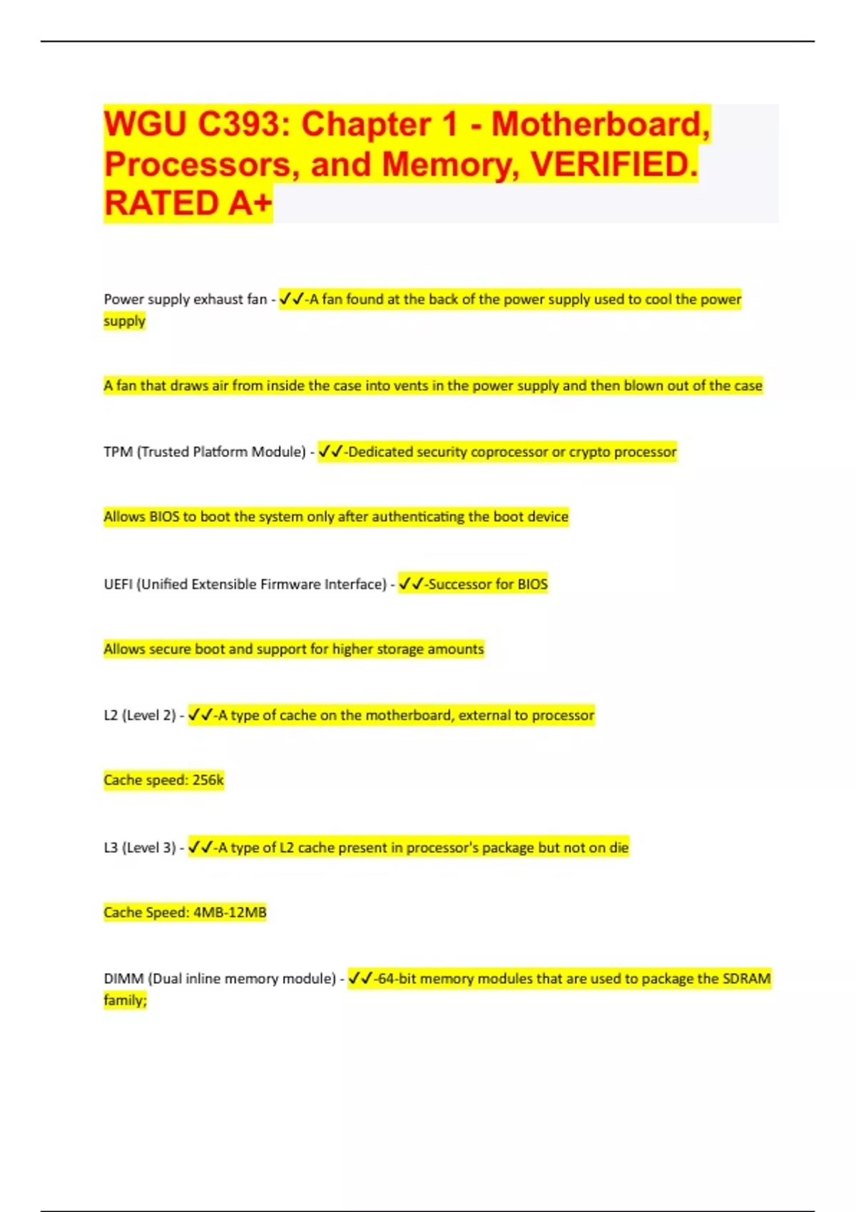 WGU C393: Chapter 1 - Motherboard, Processors, and Memory, VERIFIED. RATED A+ 2024