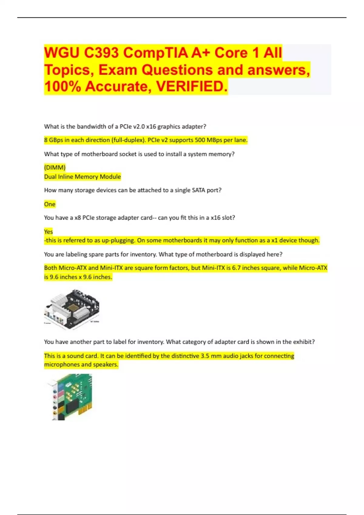 WGU C393 CompTIA A+ Core 1 All Topics, Exam Questions and answers, 100% Accurate, VERIFIED 2024 | 67 Pages
