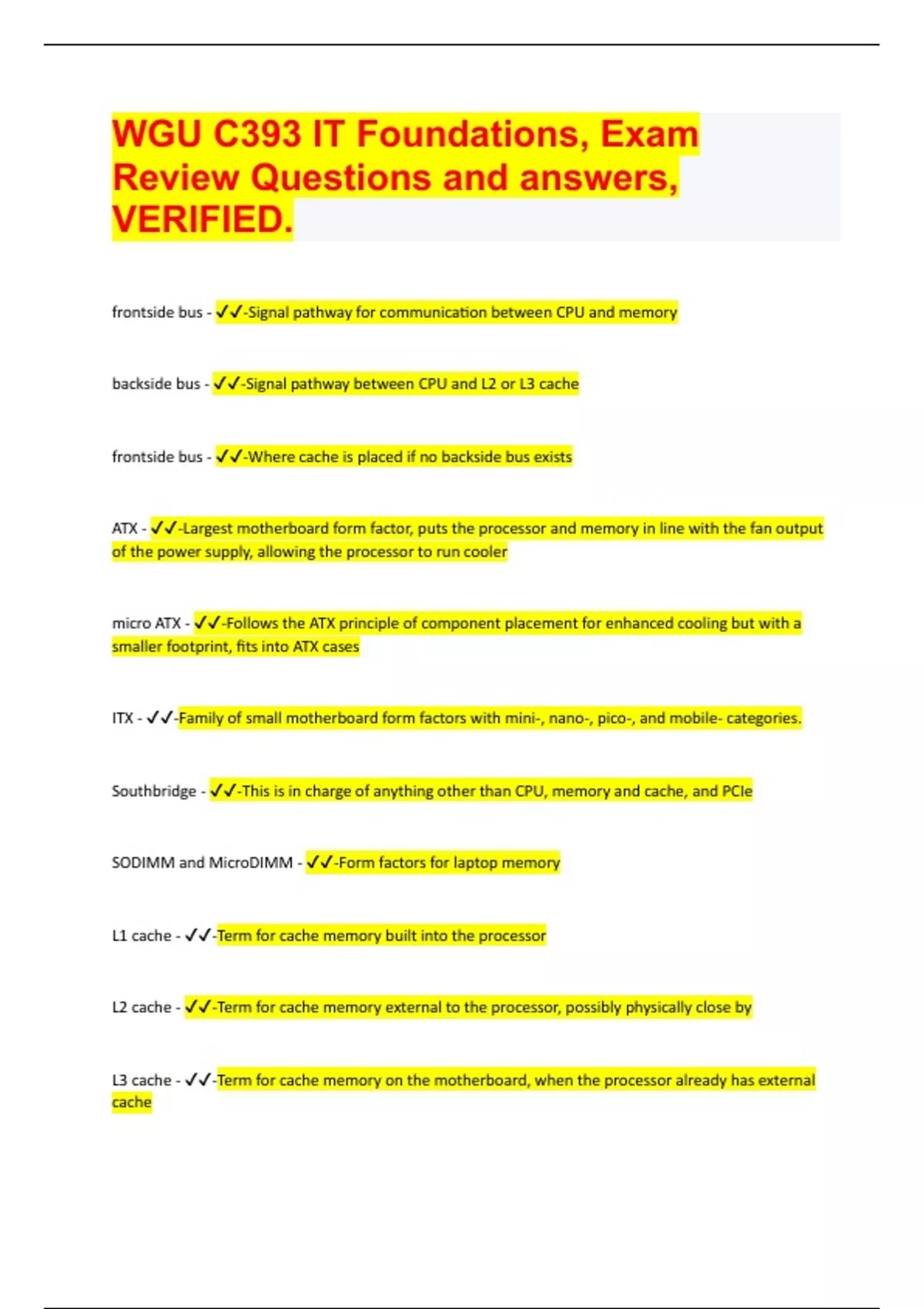 WGU C393 IT Foundations, Exam Review Questions and answers, VERIFIED 2024