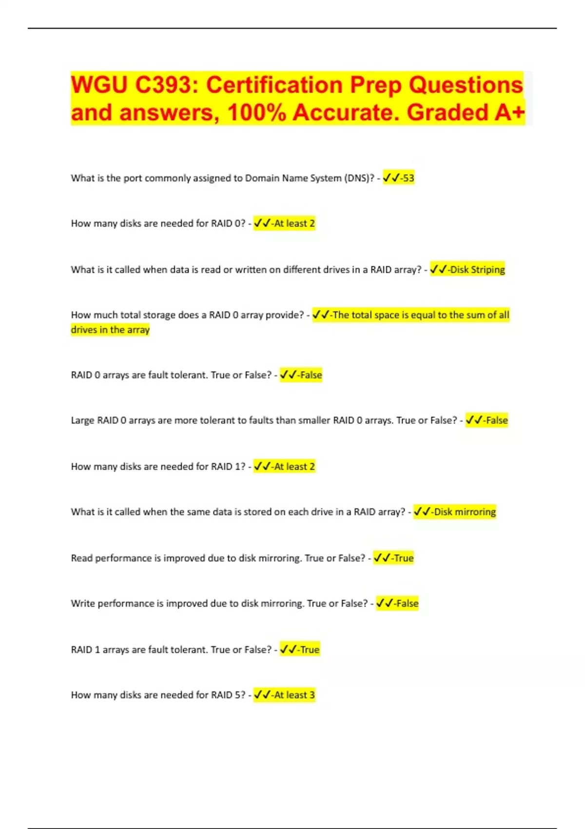 WGU C393: Certification Prep Questions and answers, 100% Accurate. Graded A+ 2024 | 27 Pages