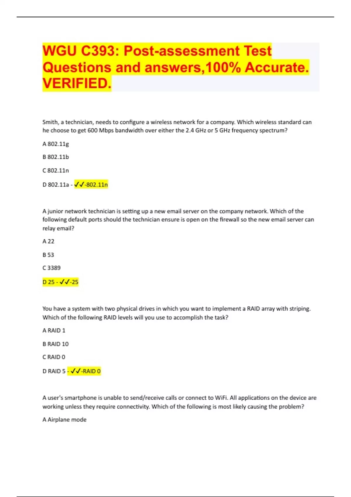 WGU C393: Post-assessment Test Questions and answers,100% Accurate. VERIFIED 2024 | 23 Pages