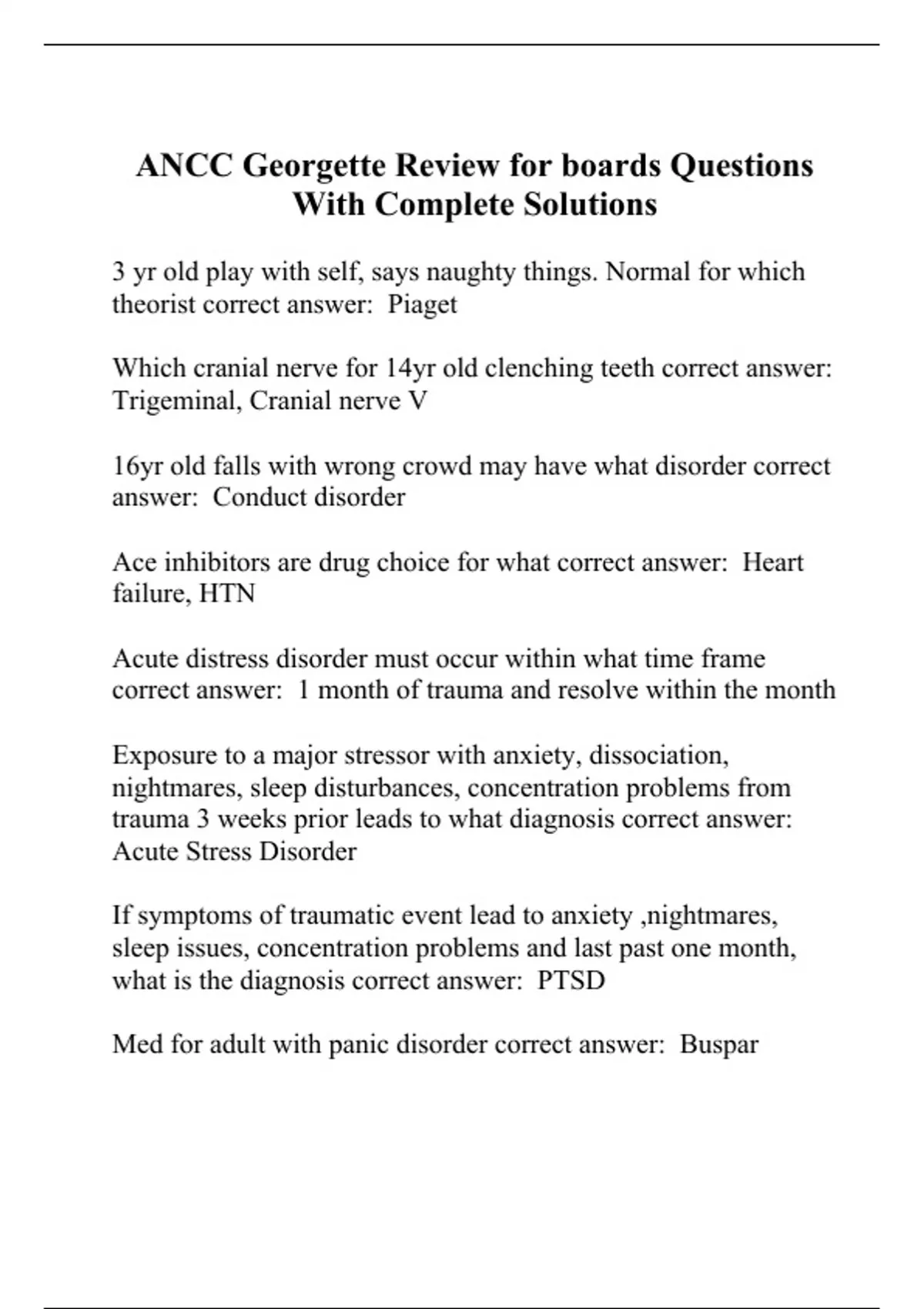 ANCC Georgette Review for boards Questions With Complete Solutions