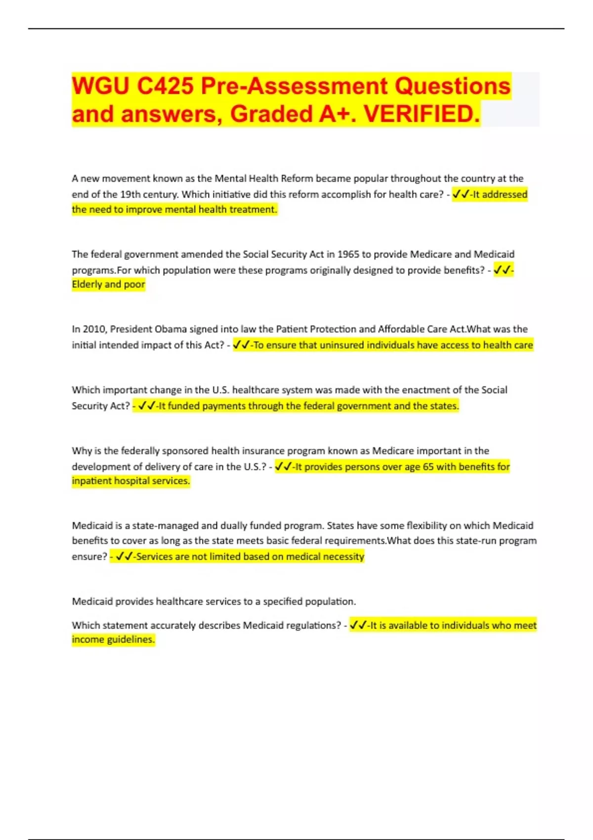 WGU C425 Pre-Assessment Questions and answers, Graded A+. VERIFIED 2024