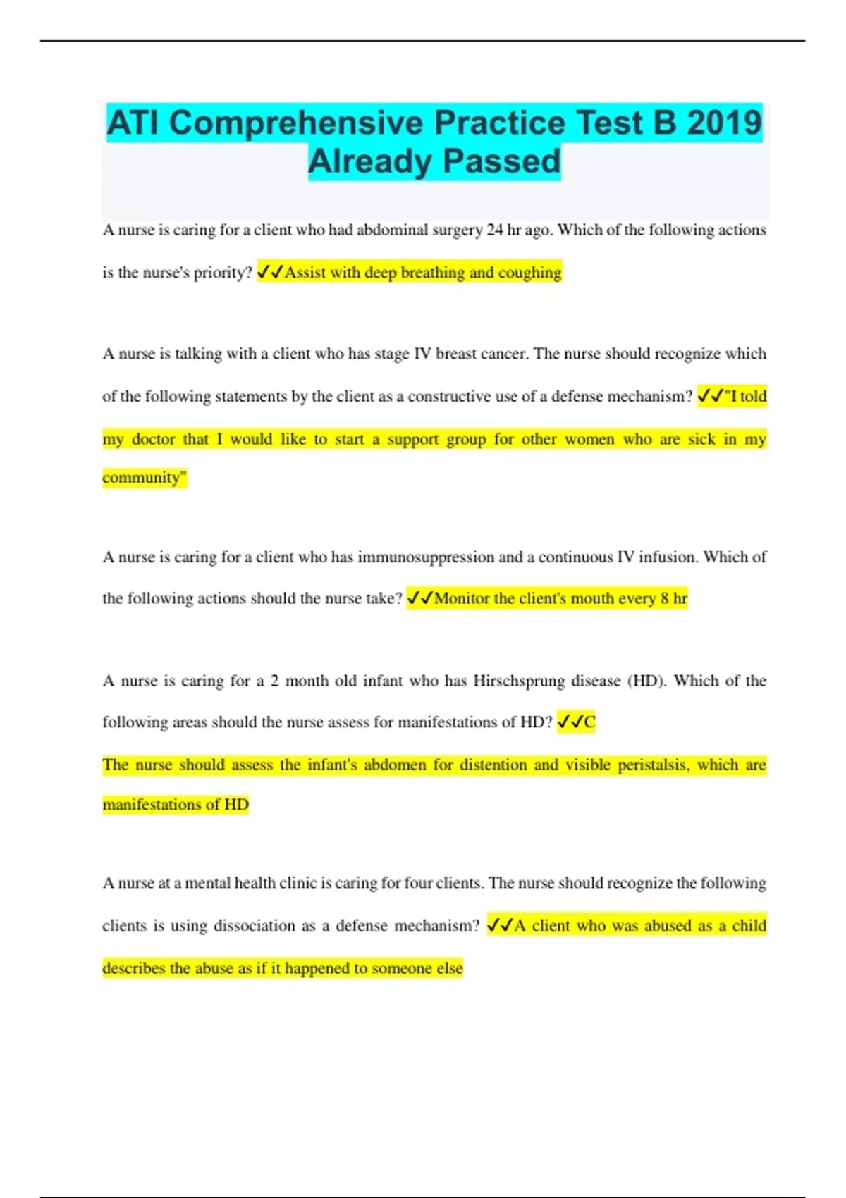 ATI Comprehensive Practice Test B 2019 Already Passed