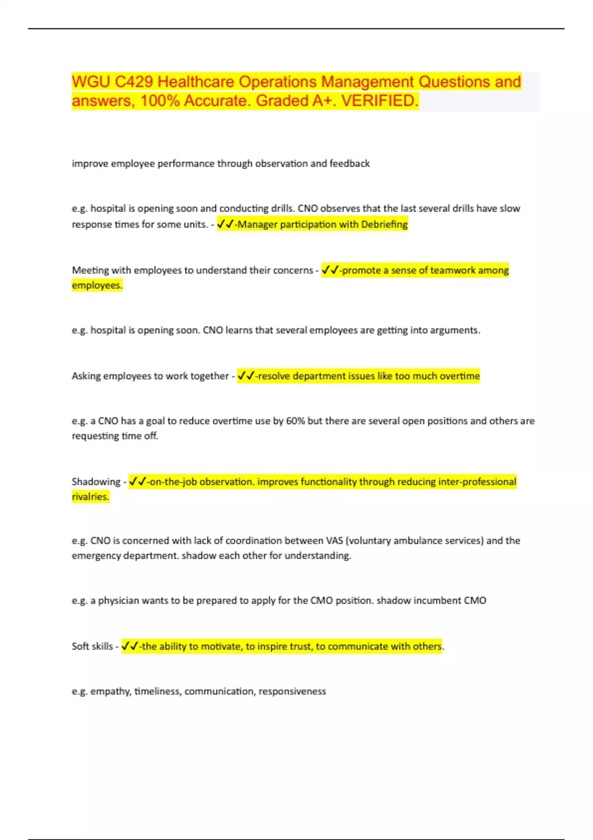 WGU C429 Healthcare Operations Management Questions and answers, 100% Accurate. Graded A+. VERIFIED 2024