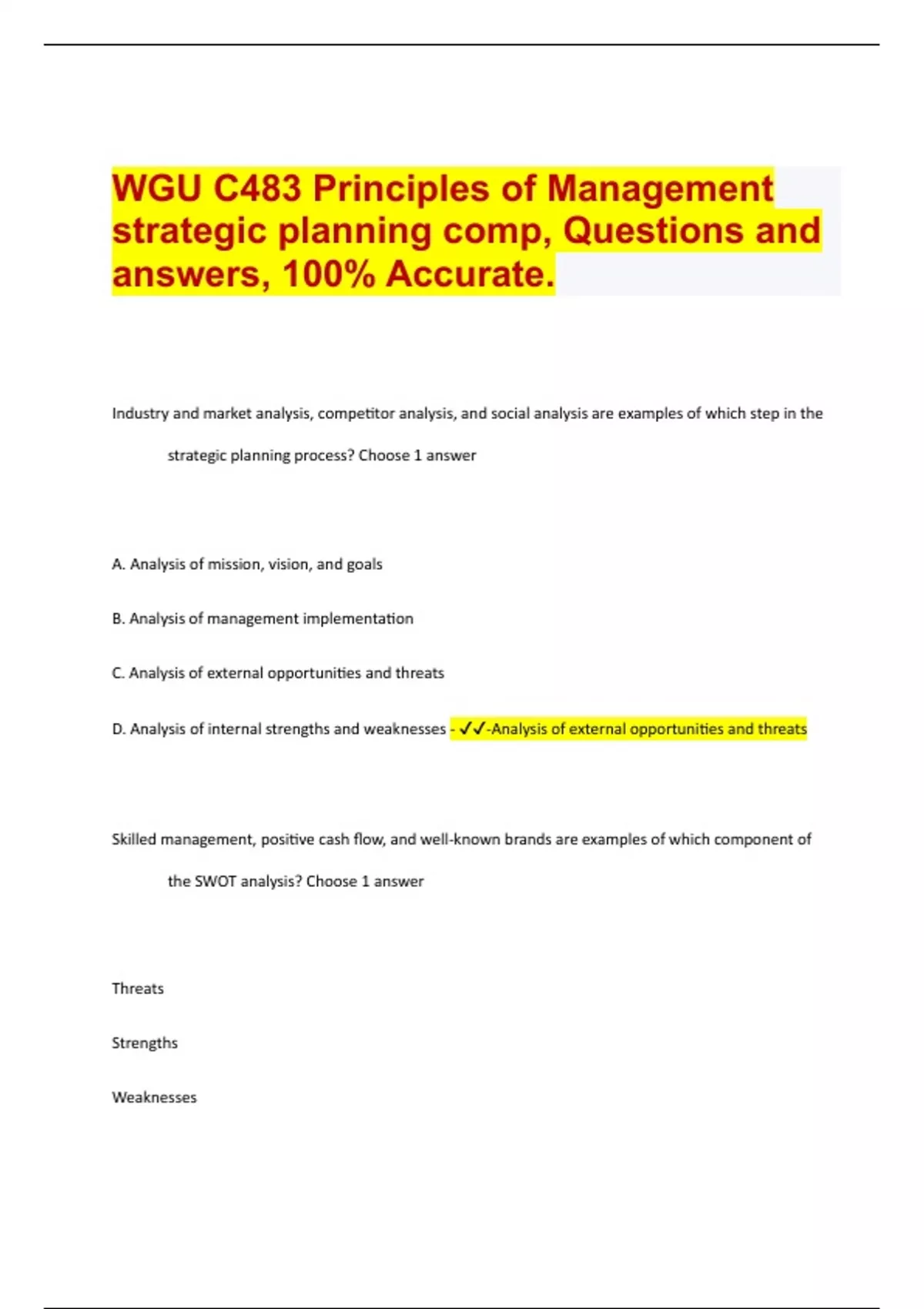 WGU C483 Principles of Management strategic planning comp, Questions and answers, 100% Accurate 2024
