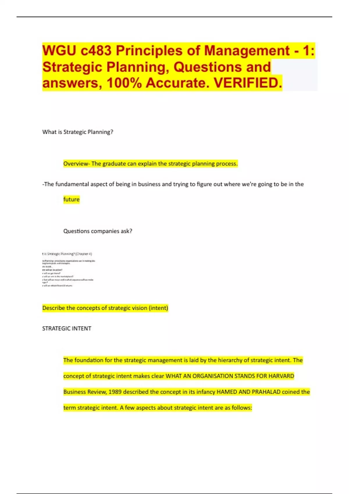 WGU c483 Principles of Management - 1: Strategic Planning, Questions and answers, 100% Accurate. VERIFIED 2024