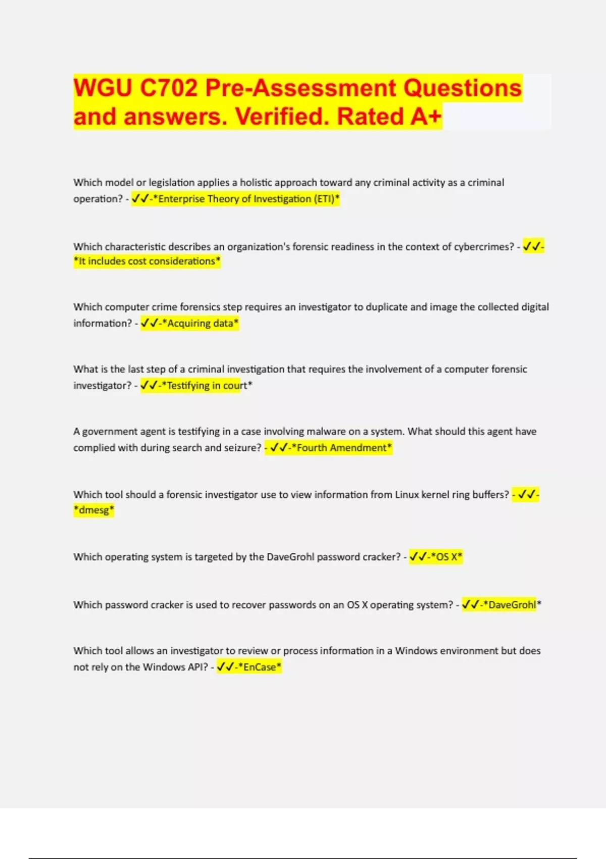 WGU C702 Pre-Assessment Questions and answers. Verified. Rated A+ 2024