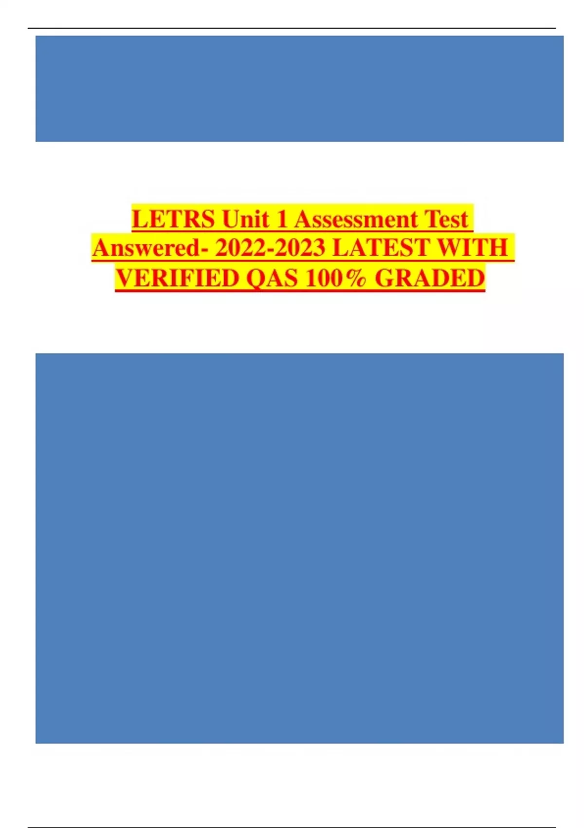 , LETRS Unit 1 Assessment Test Answered- 2022.