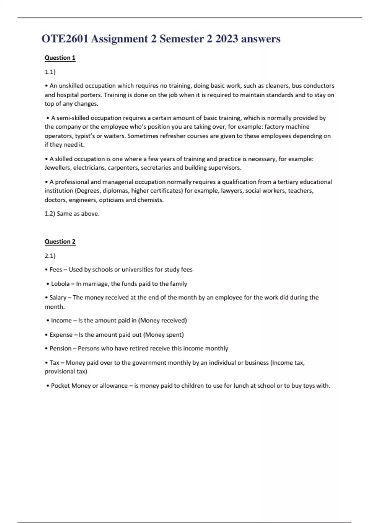 OTE2601 Assignment 2 Semester 2 2023 answers