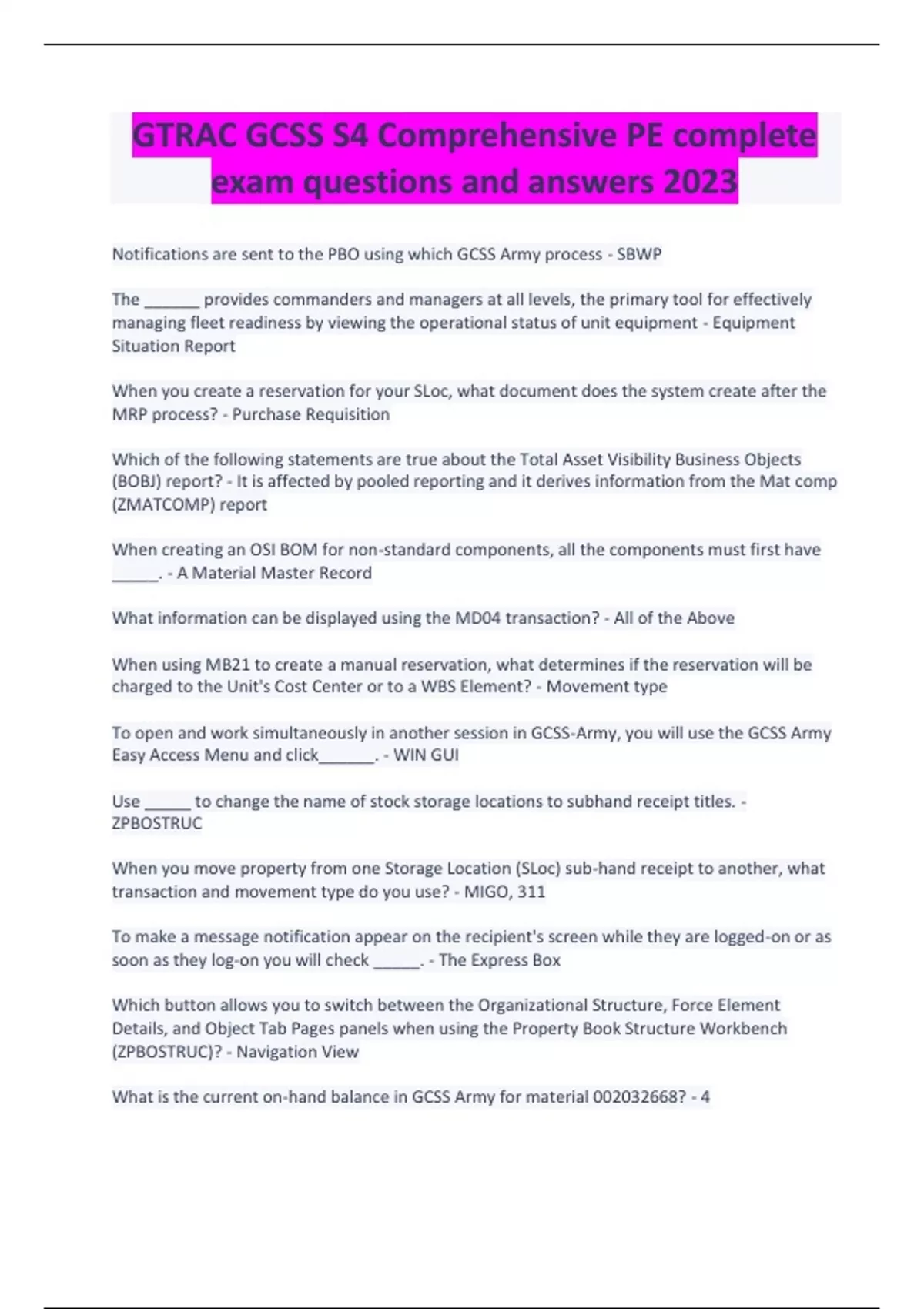 COMBINED EXAM FOR GCSS-ARMY COMMANDER'S COURSE ALL YOU NEED TO KNOW PRACTICE EXAM SOLUTIONS 2023