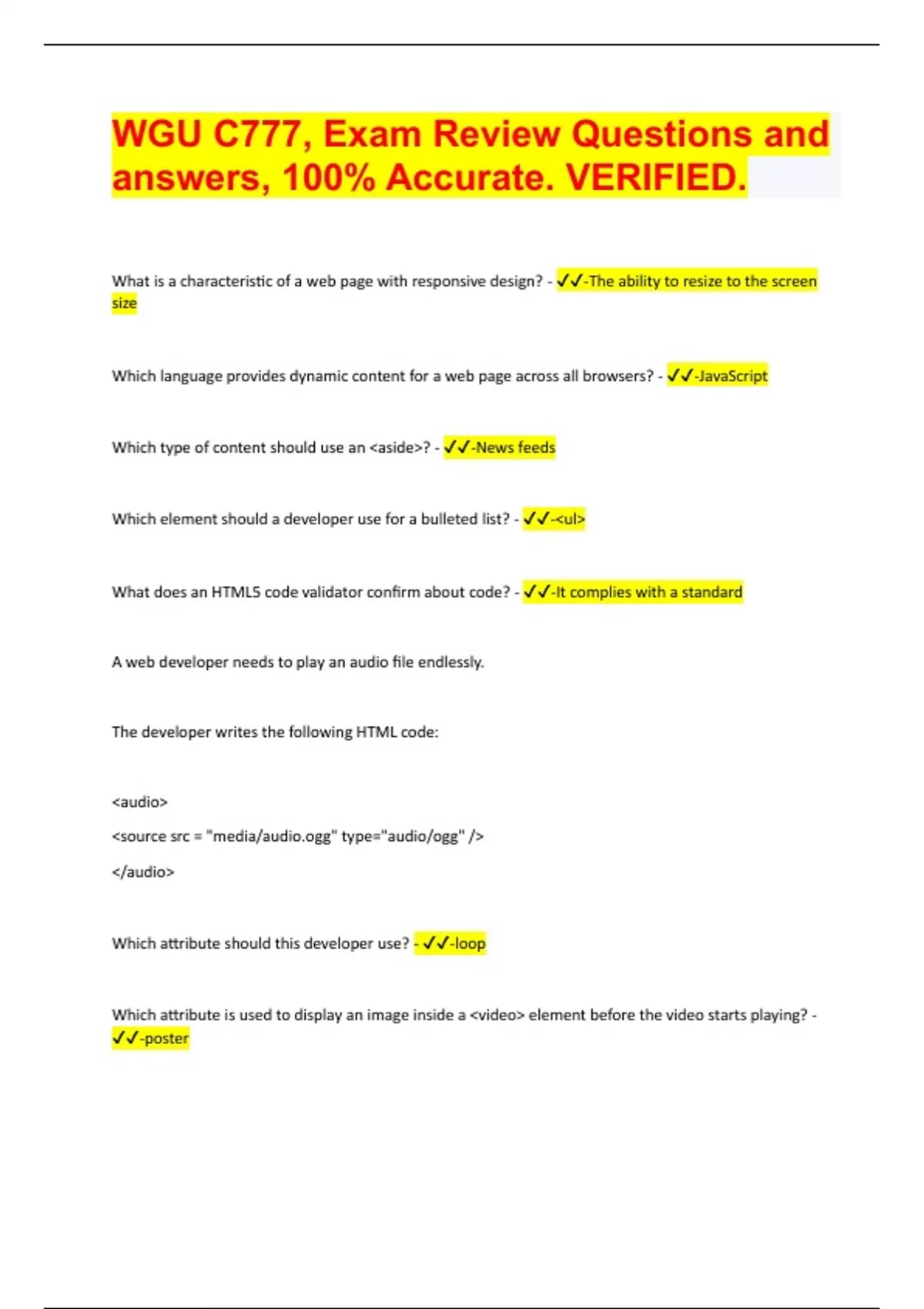 WGU C777, Exam Review Questions and answers, 100% Accurate. VERIFIED 2024