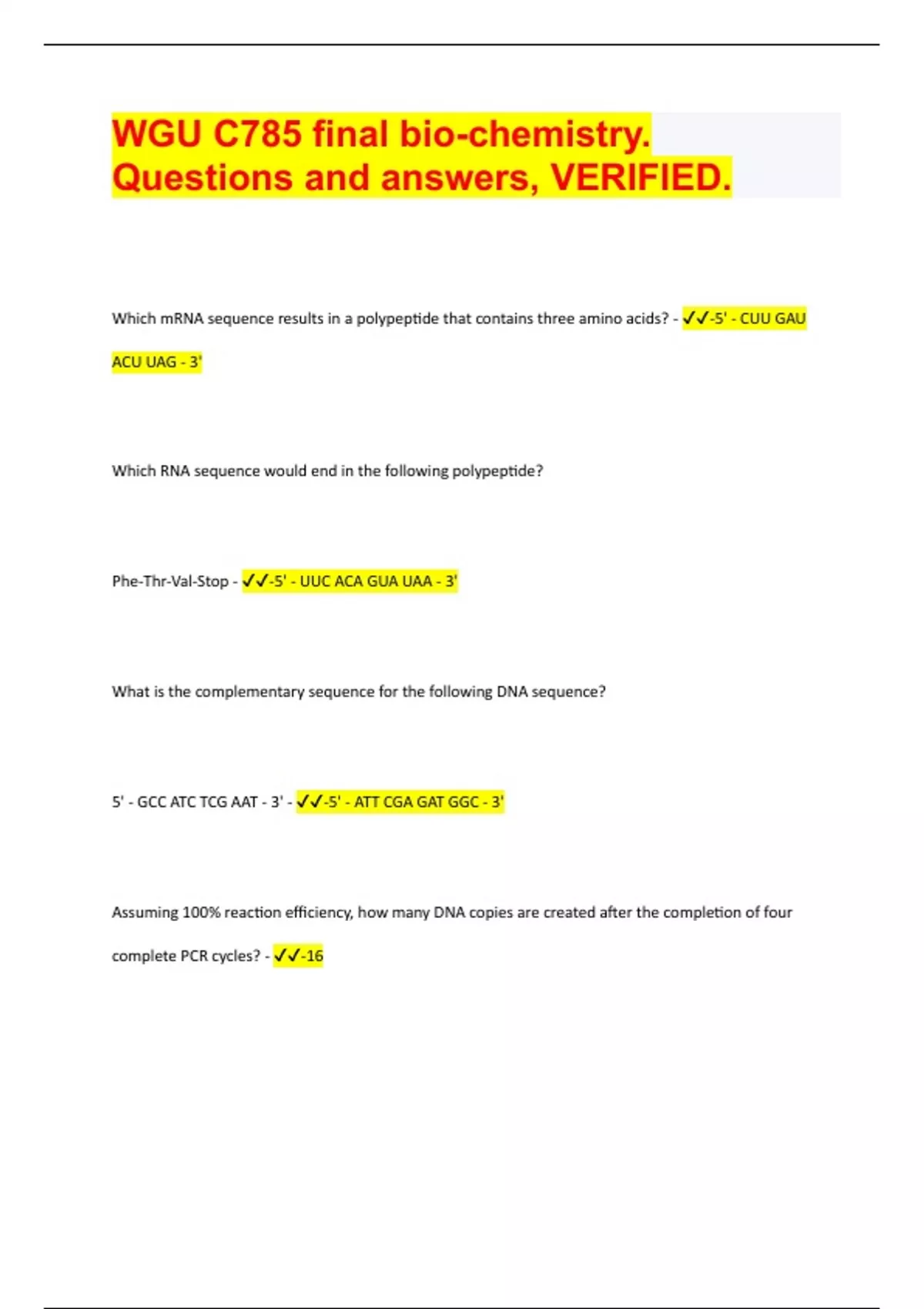 WGU C785 final bio-chemistry. Questions and answers, VERIFIED 2024