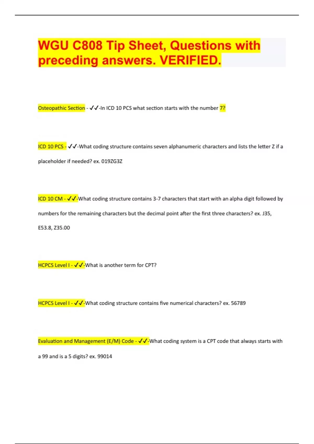 WGU C808 Tip Sheet, Questions with preceding answers. VERIFIED 2024