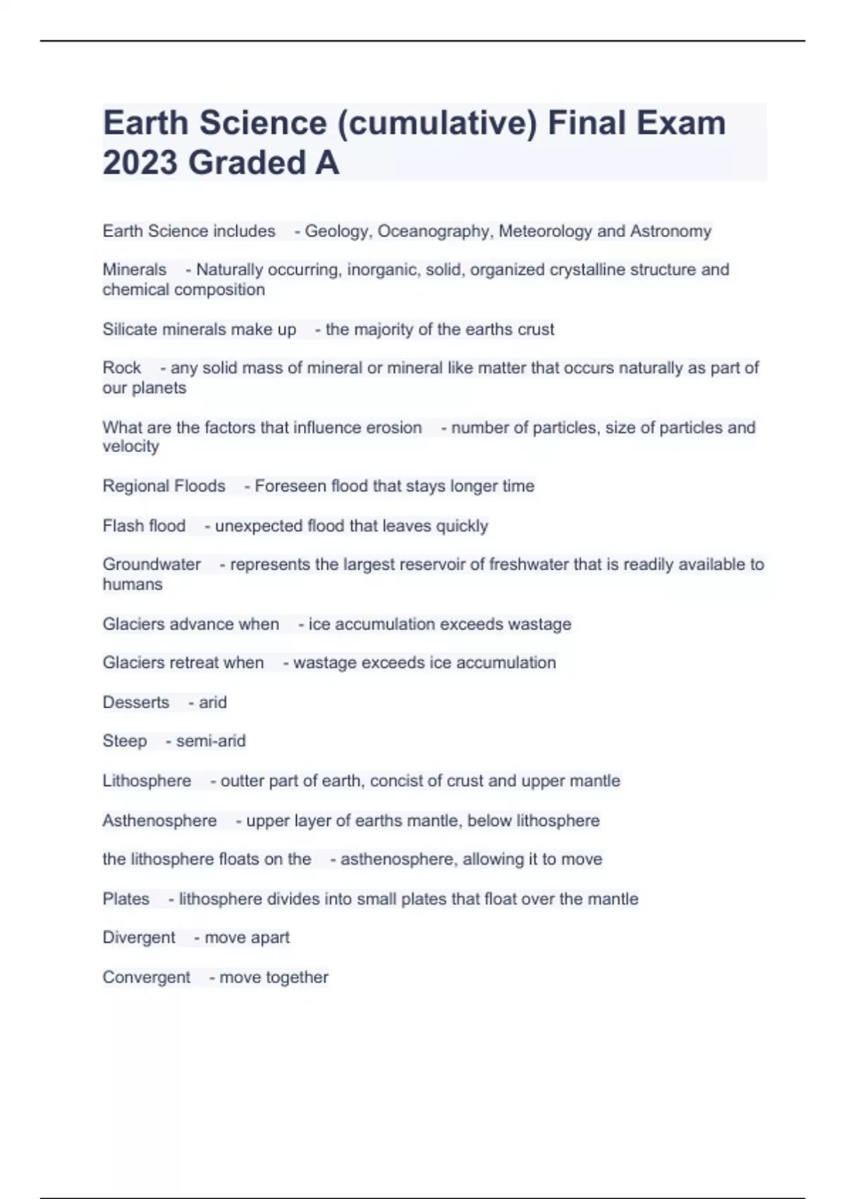 Earth Science (cumulative) Final Exam 2023 Graded A