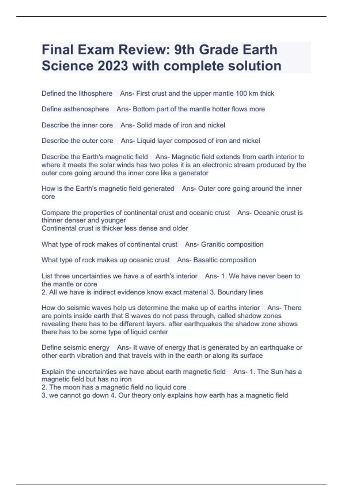 Final Exam Review: 9th Grade Earth Science 2023 with complete solution