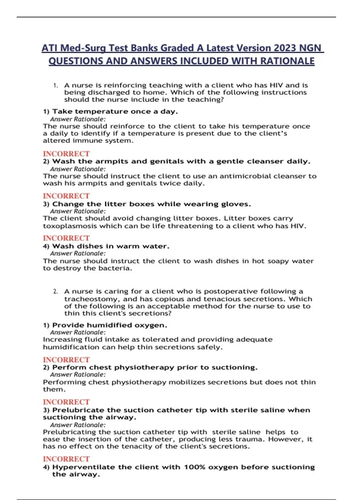 ATI Med-Surg Test Banks Graded A Latest Version 2023 NGN QUESTIONS AND ANSWERS INCLUDED WITH RATIONALE