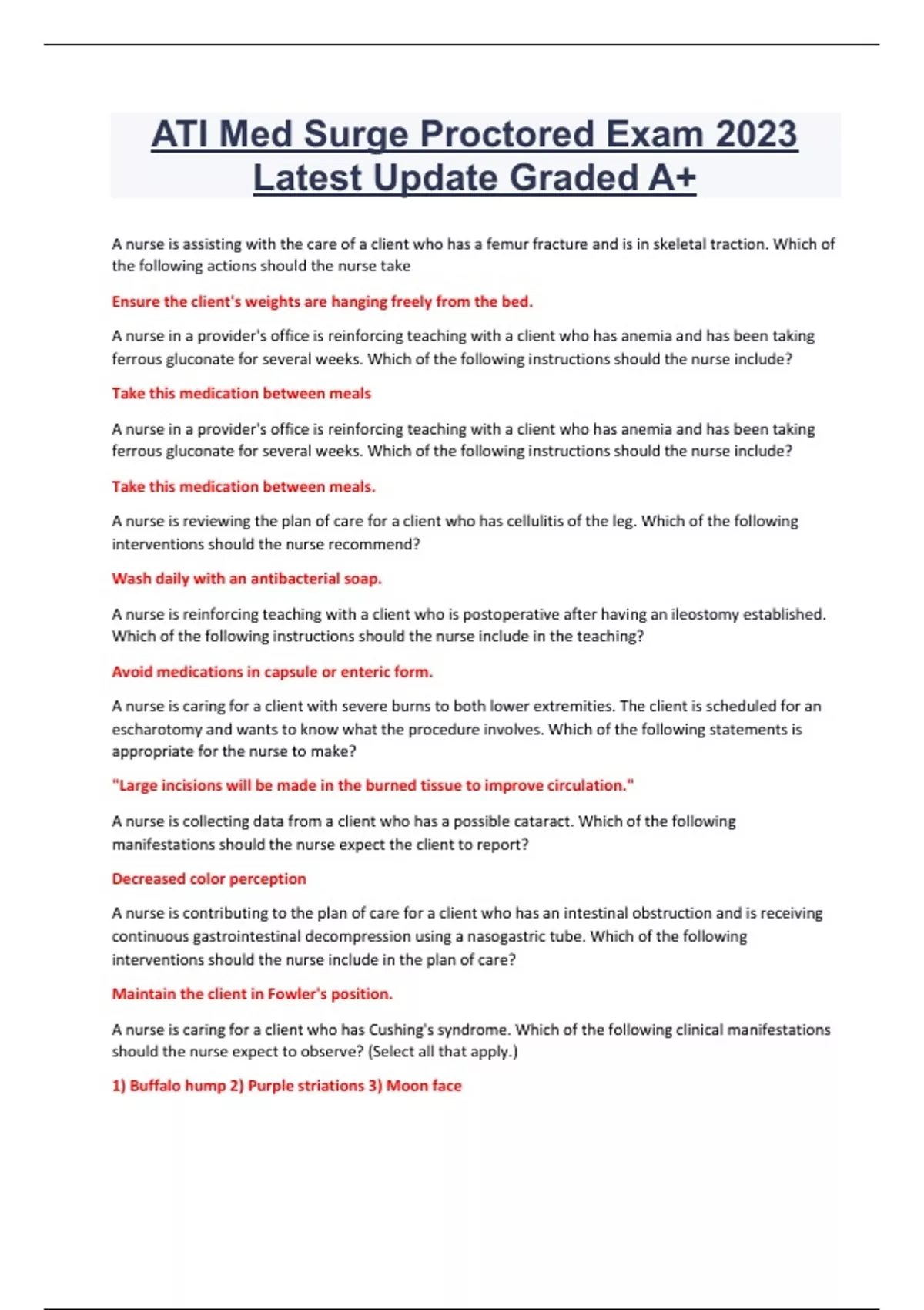 ATI Med Surge Proctored Exam 2023 Latest Update Graded A+