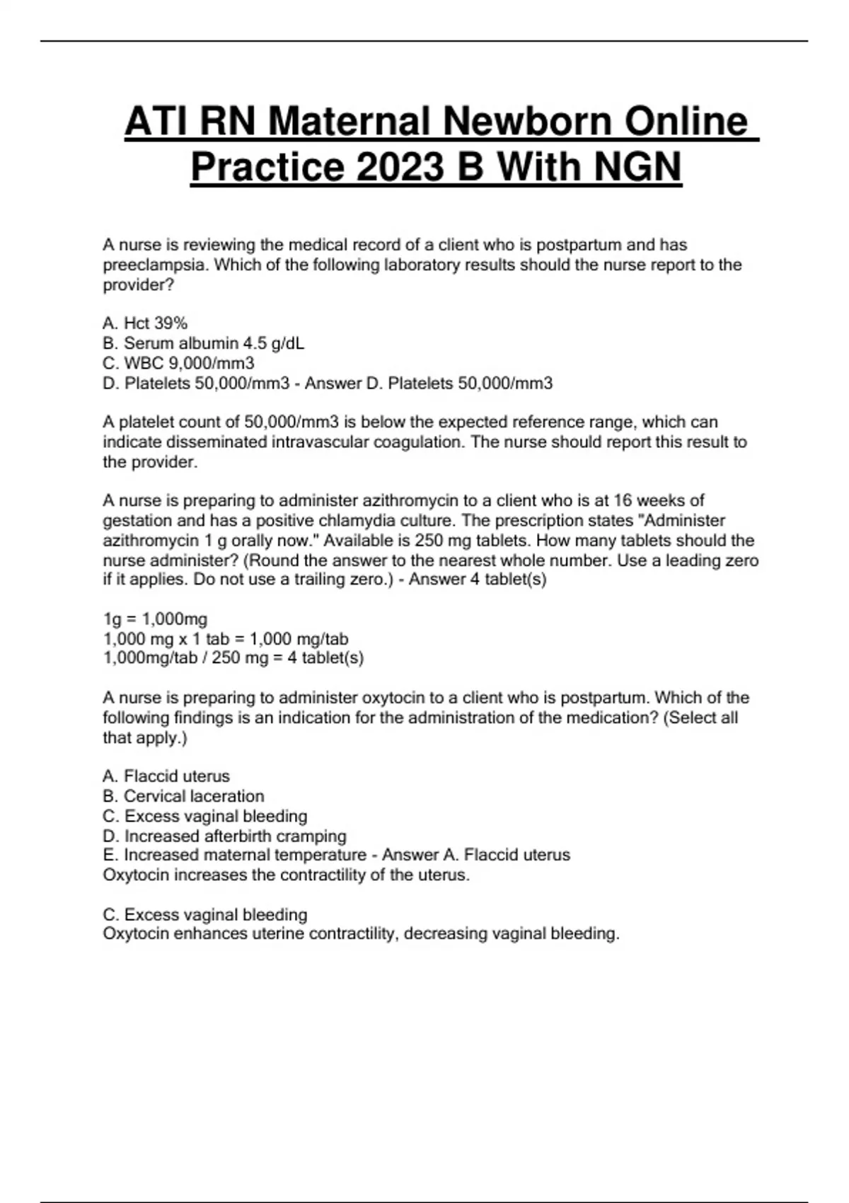 - ATI RN Maternal Newborn Online Practice 2023 B