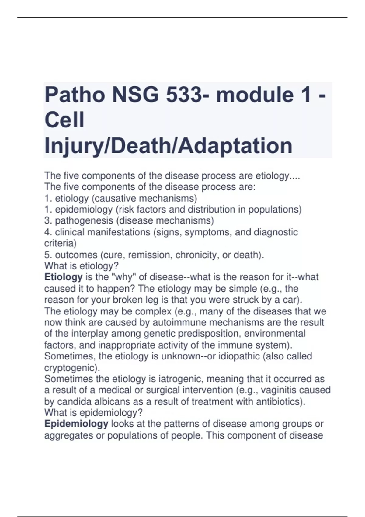 Patho NSG 533- module 1 - Cell Injury/Death/Adaptation