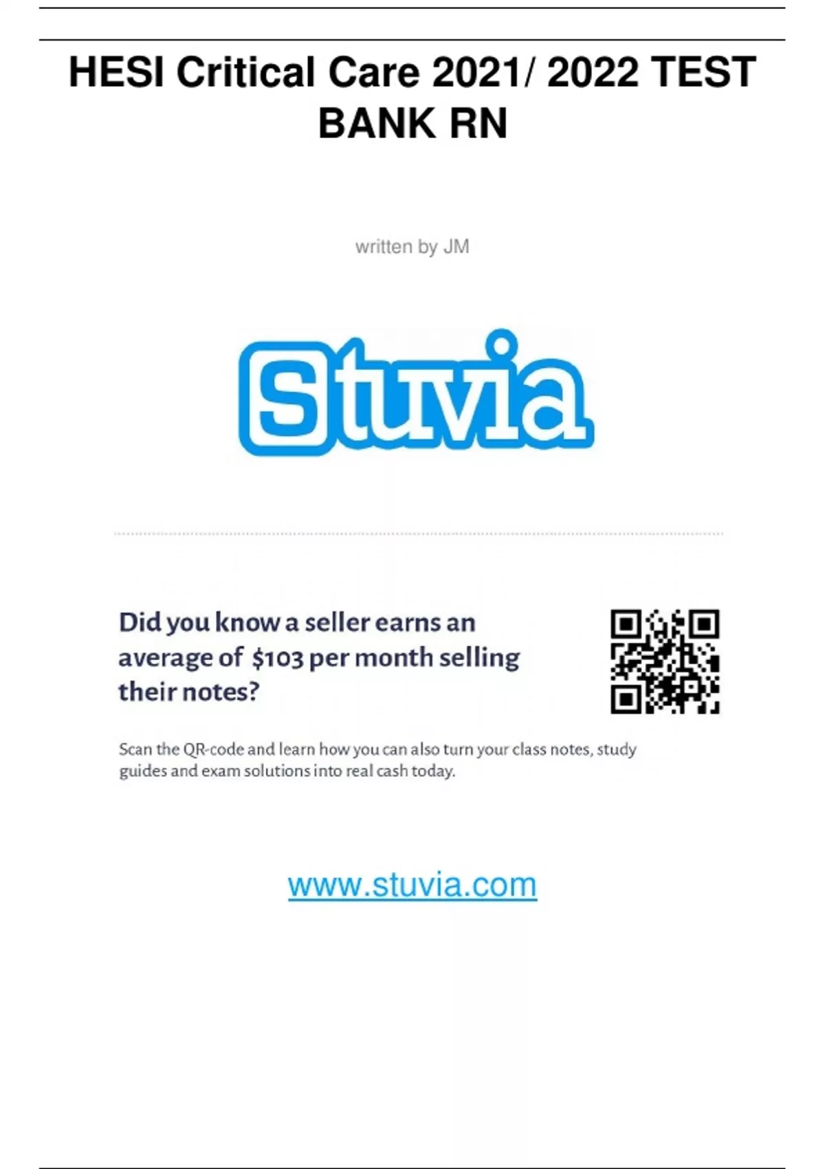 HESI Critical Care 2022 TEST BANK RN HESI Critical Care 2022 TEST BANK RN HESI Critical Care 2022 TEST BANK RN