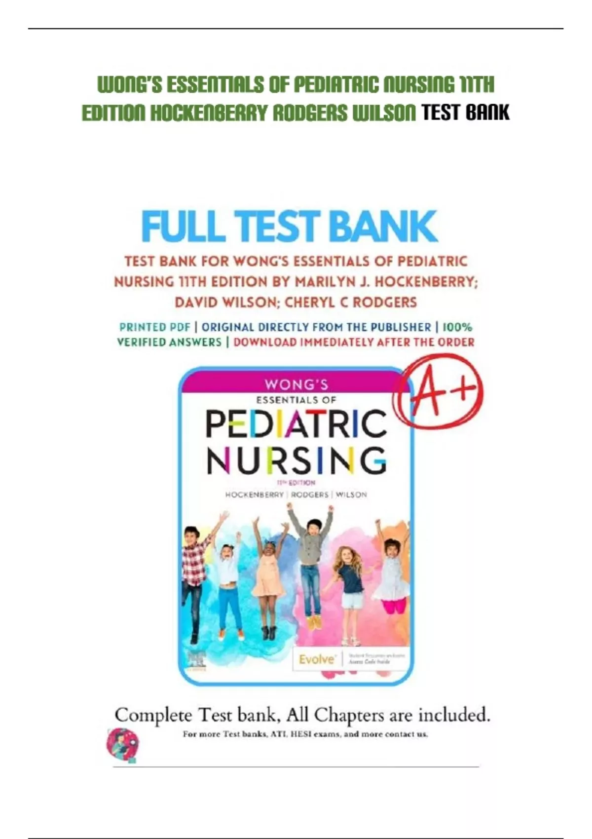 Wong’s Essentials of Pediatric Nursing 11th Edition Hockenberry Rodgers Wilson Test Bank | Q&A EXPLAINED (GRADED A+) | BEST 2023