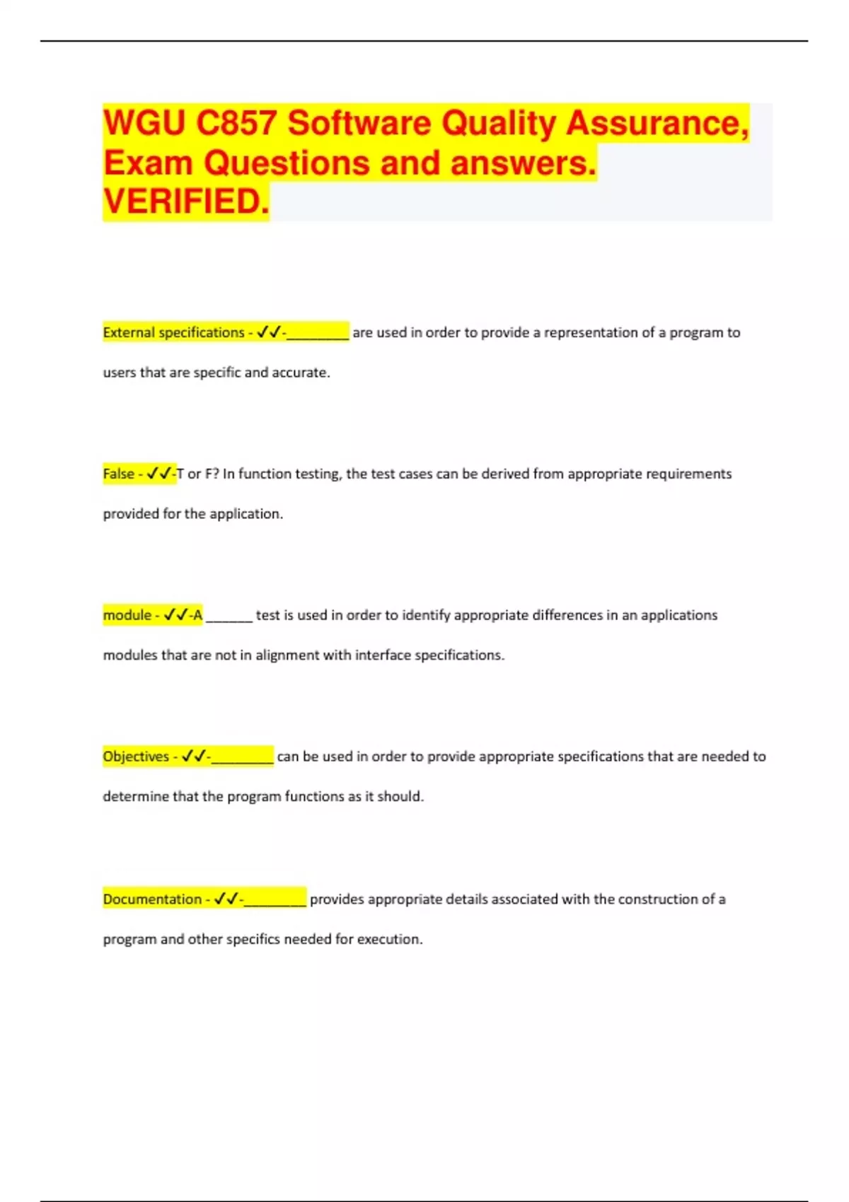WGU C857 Software Quality Assurance. Questions and answers, VERIFIED. RATED A+