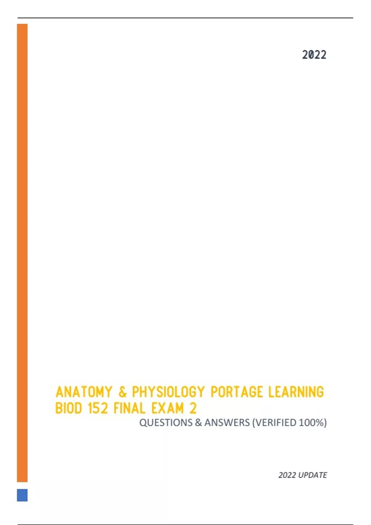 BIOD 152 ANATOMY & PHYSIOLOGY PORTAGE LEARNING FINAL EXAM 2 Q&A (SCORED A+) | 2022 UPDATE