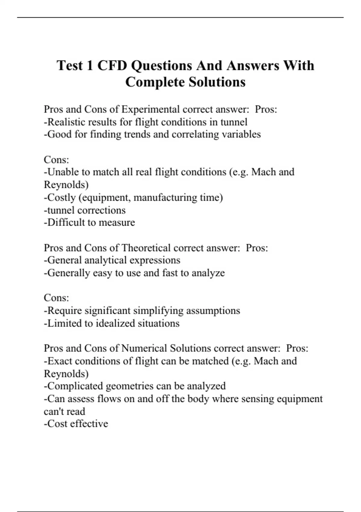 test 1 cfd questions and answers with complete sol