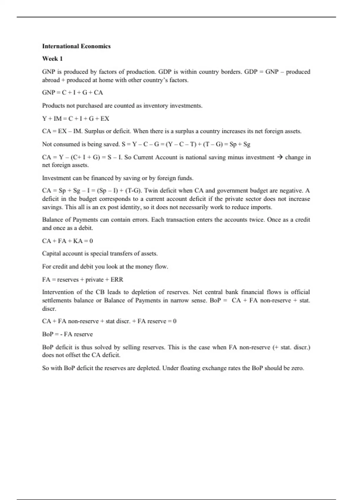 So with BoP deficit the reserves are depleted. Under floating exchange rates the BoP should be zero.