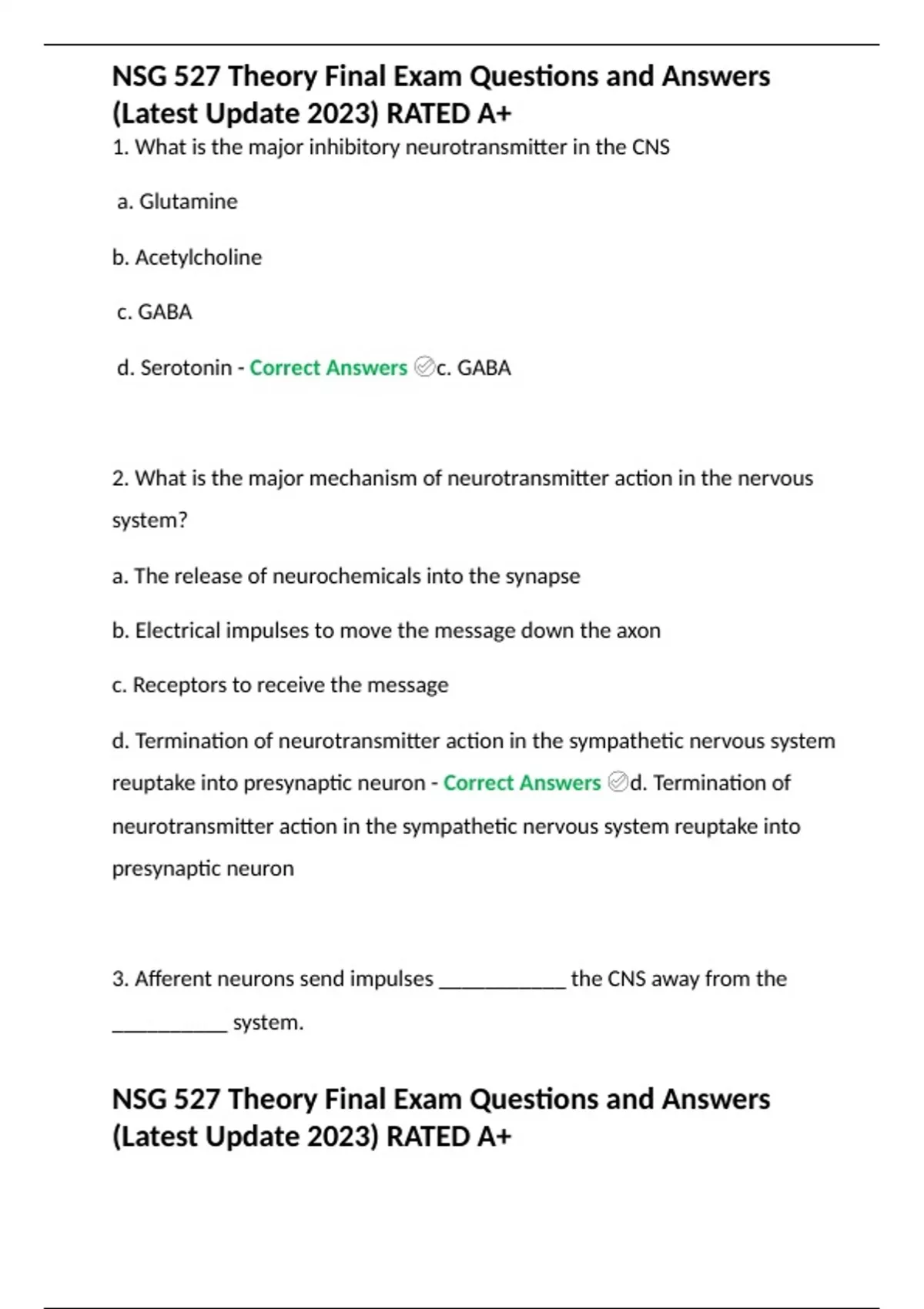 NSG 527 Theory Final Exam Questions and Answers (Latest Update 2023) RATED A+