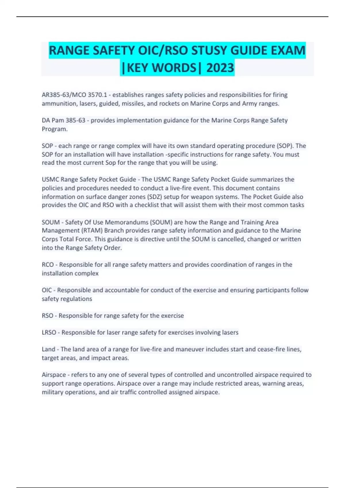 RANGE SAFETY OIC RSO STUSY GUIDE EXAM KEY WORDS 2023