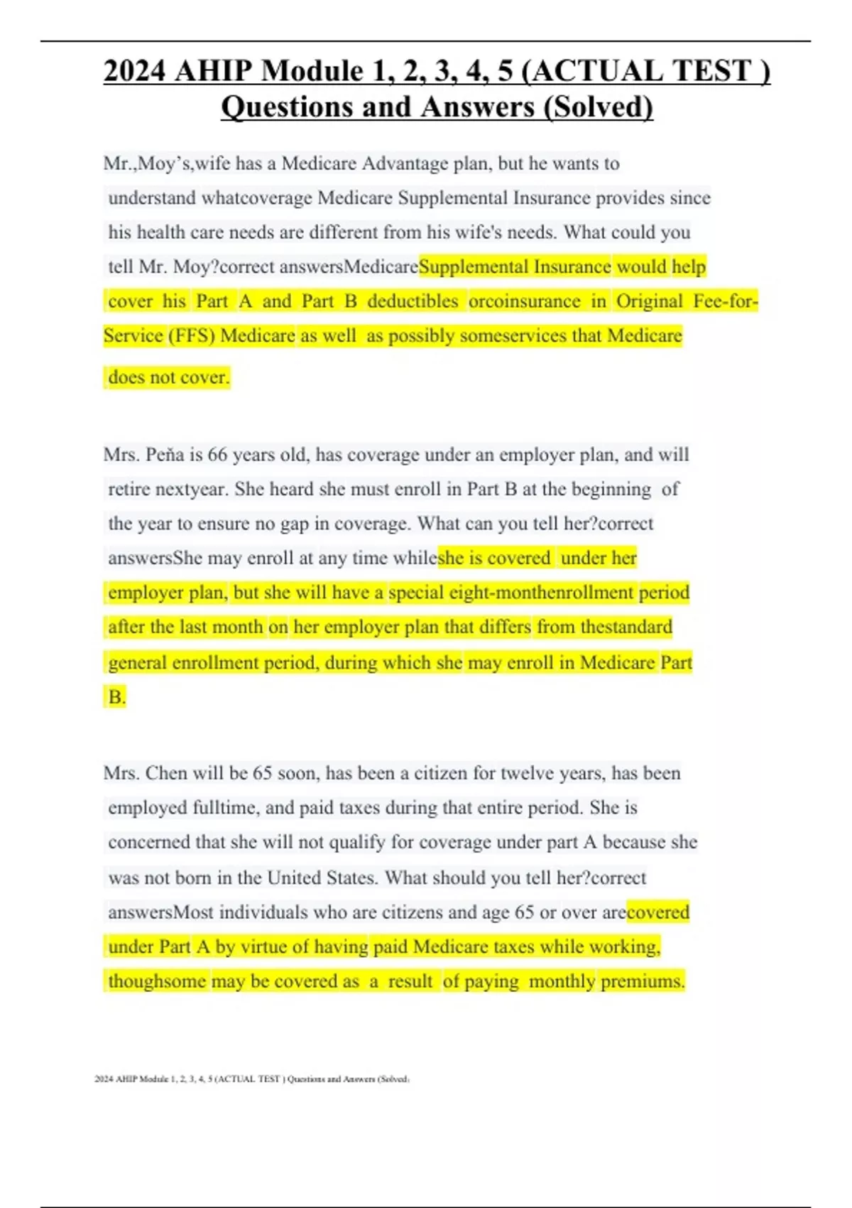 2024 AHIP Module 1, 2, 3, 4, 5 (ACTUAL TEST ) Questions and Answers (Solved)