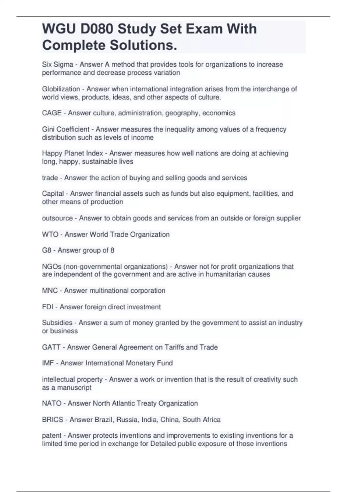 WGU D080 Study Set Exam Questions With Complete Solutions.
