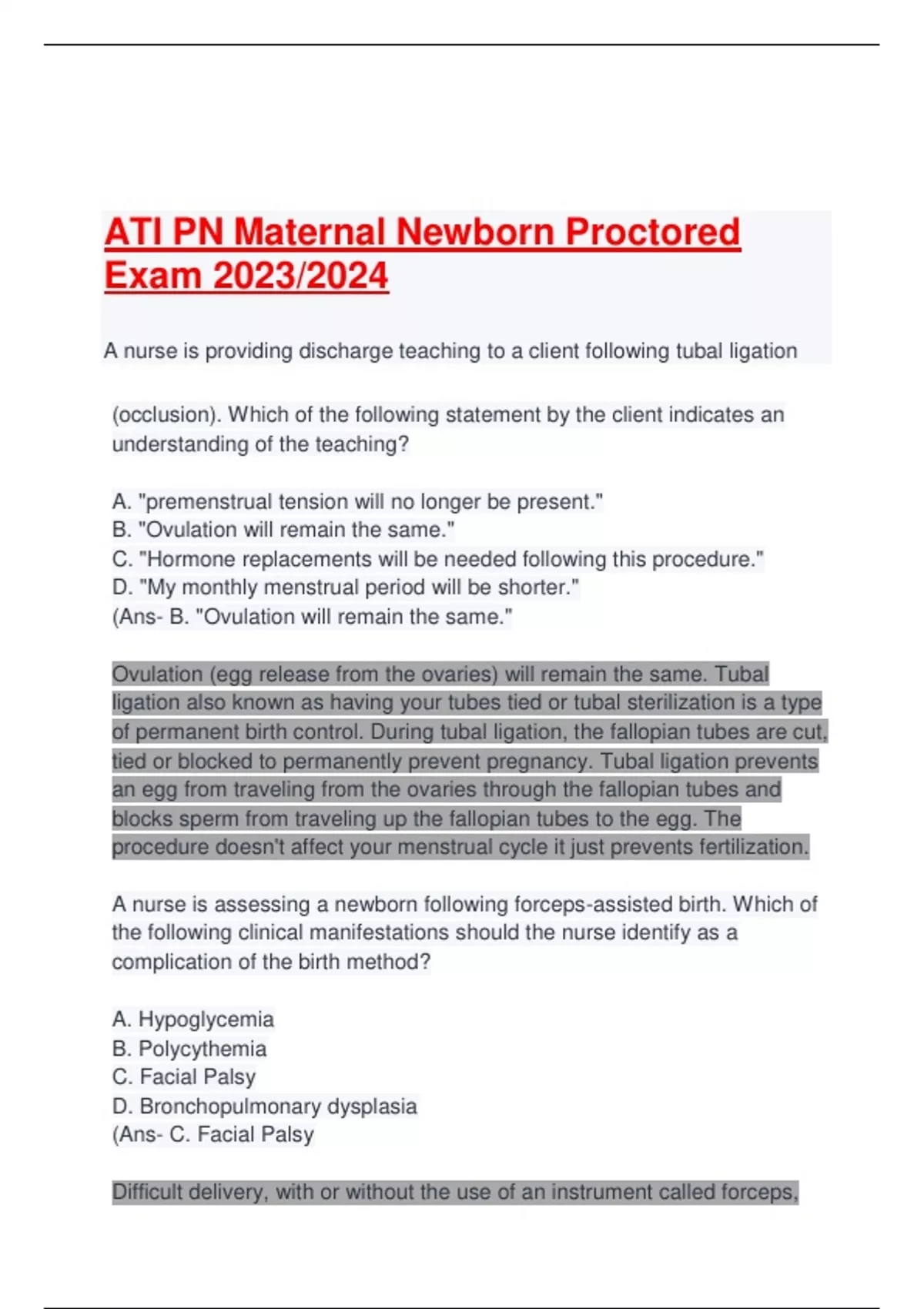 ATI PN Maternal Newborn Proctored Exam 2023/2024