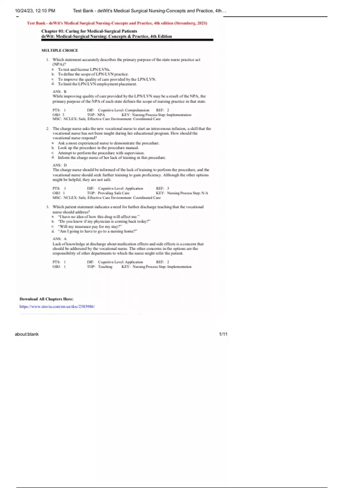 , 10/24/23, 12:10 PM Test Bank - deWit's Medical Surgical Nursing-Concepts and Practice, 4th…