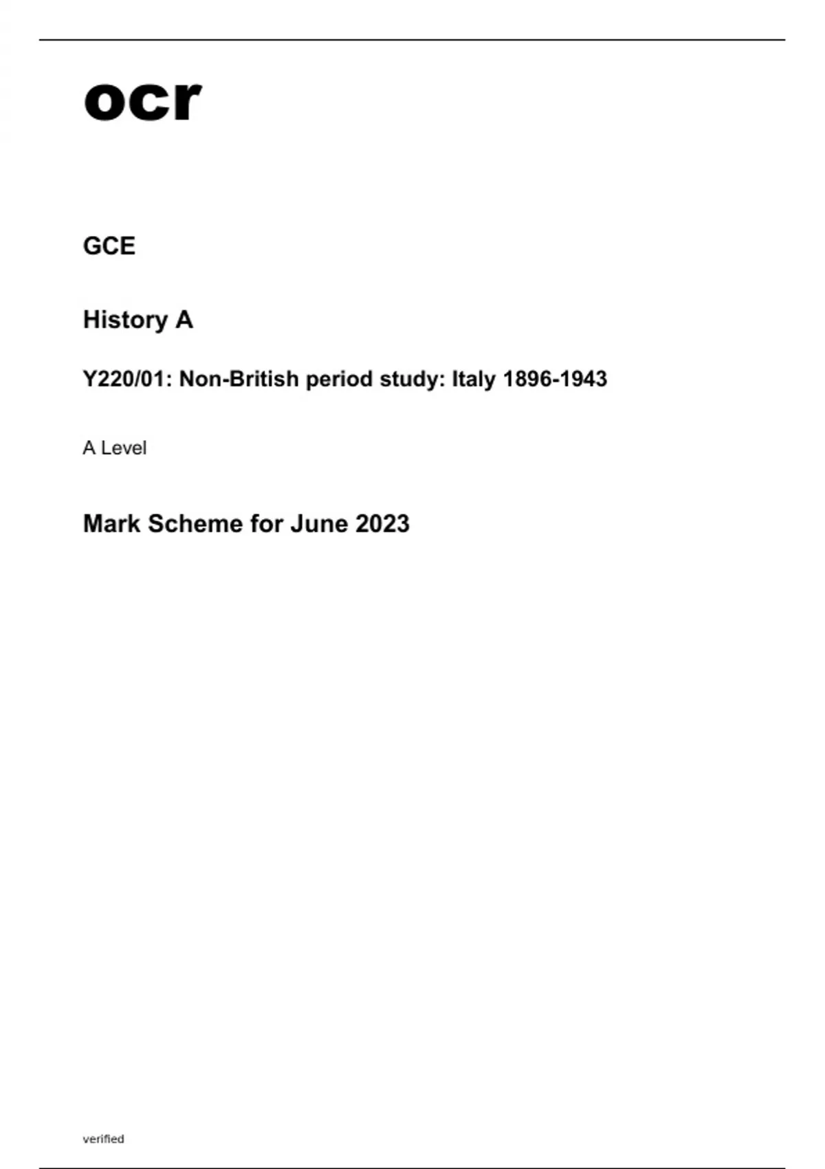 ocr A Level History A Y220-01 June2023 Mark Scheme.