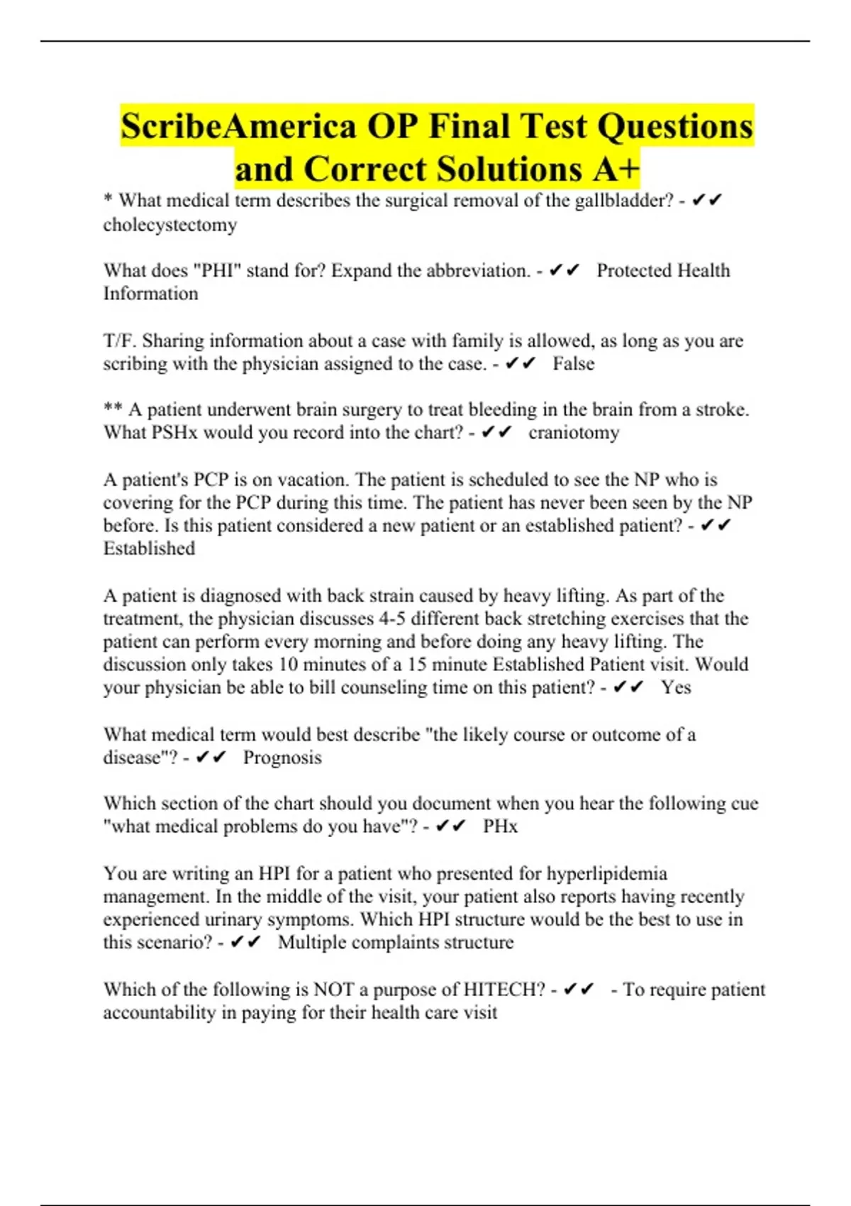 ScribeAmerica OP Final Test Questions and Correct Solutions A+