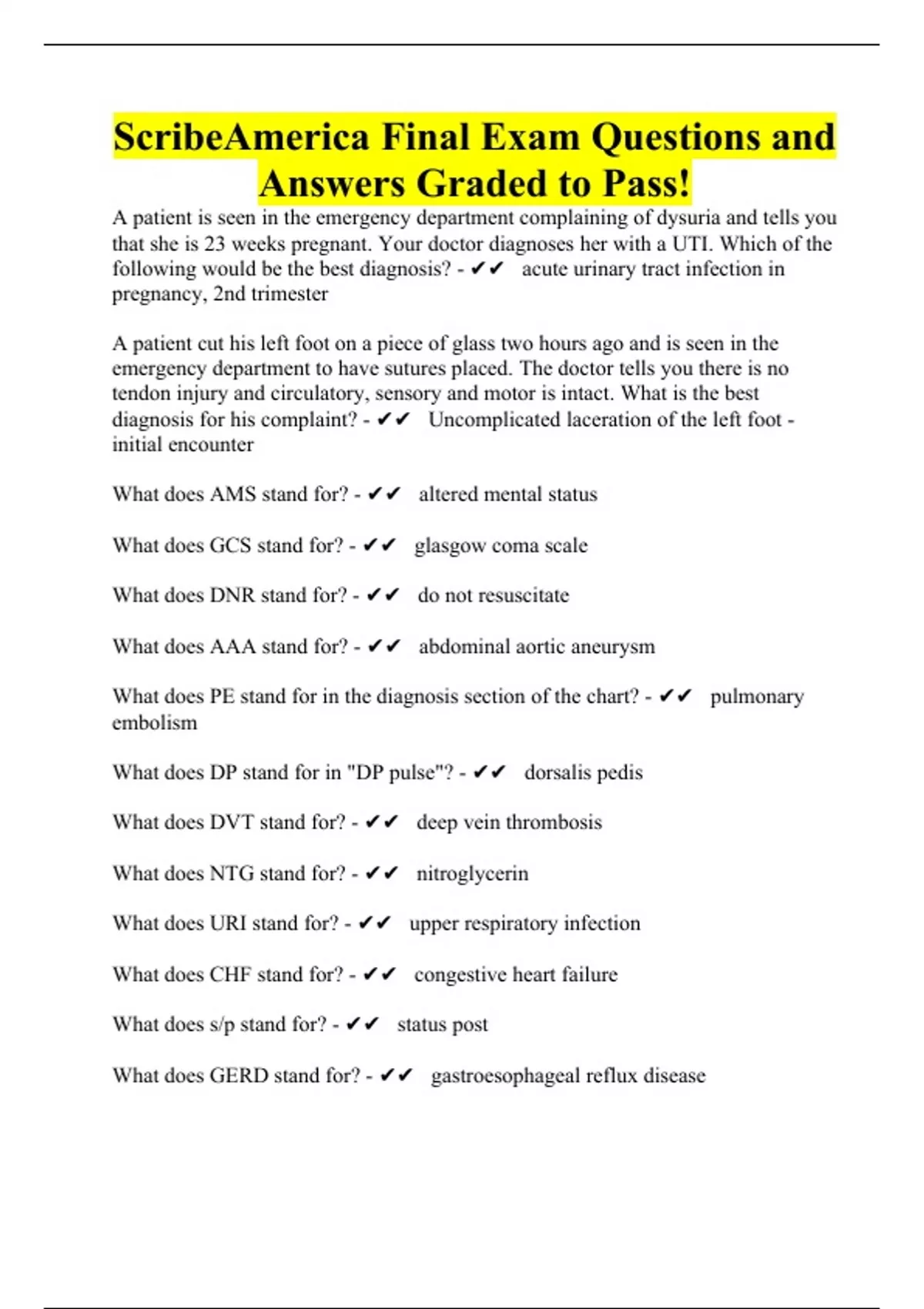 ScribeAmerica Final Exam Questions and Answers Graded to Pass!