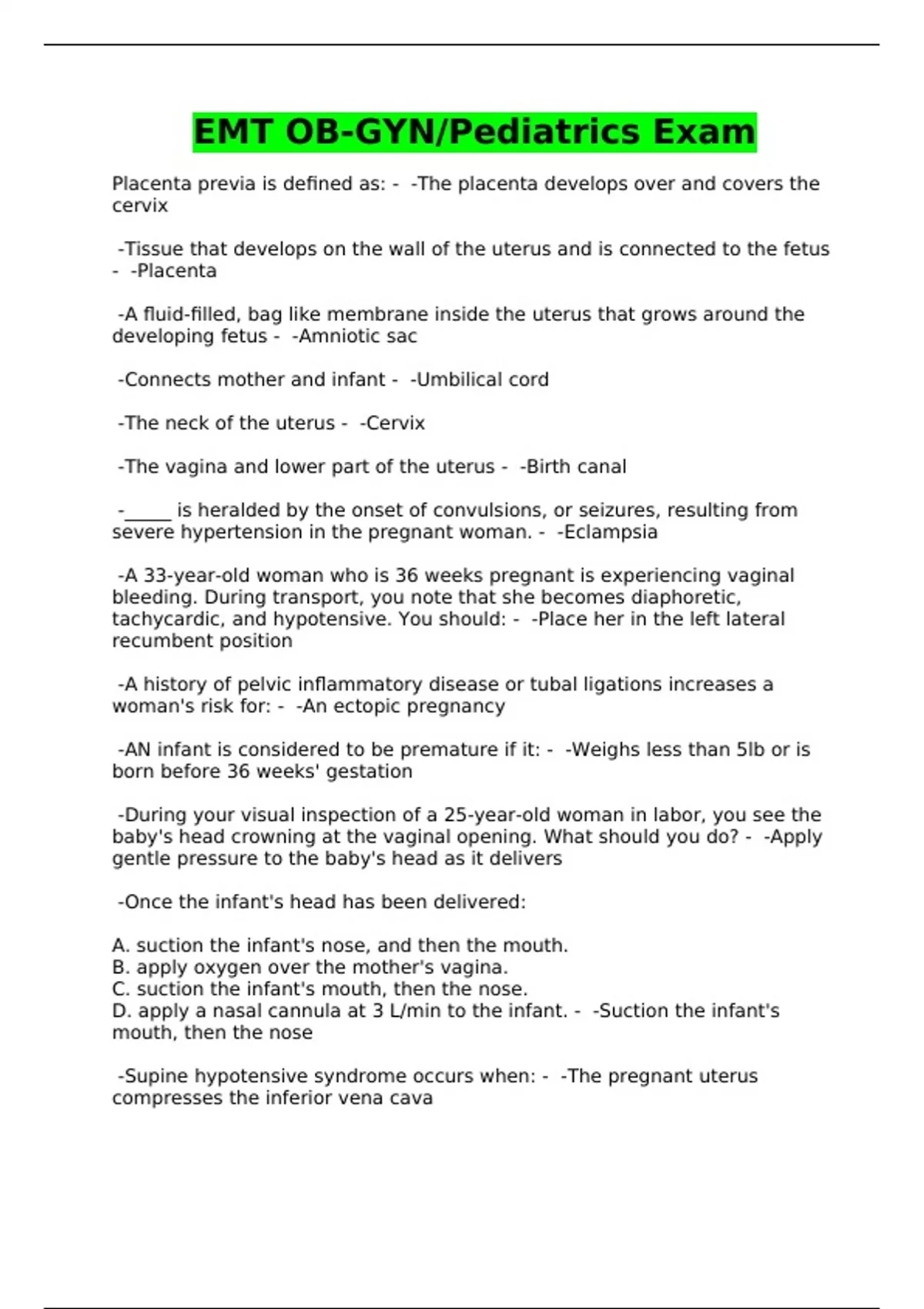 EMT OB-GYN/Pediatrics Exam
