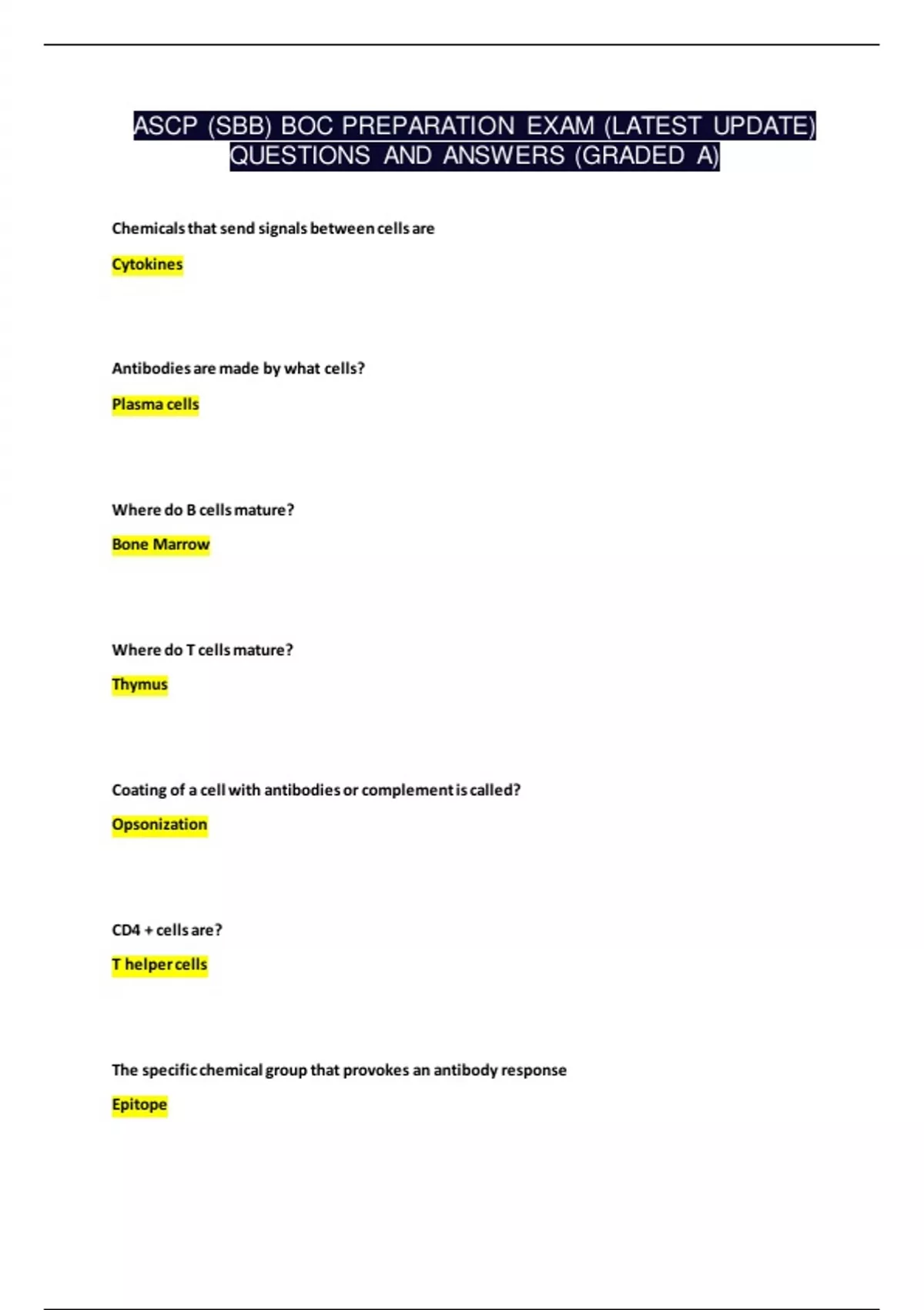ASCP (SBB) BOC PREPARATION EXAM (LATEST UPDATE) QUESTIONS AND ANSWERS