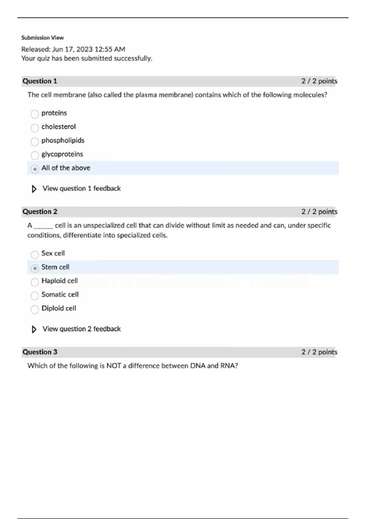 BIOL250 Week 6 Unit Exam 2 (Solutions)