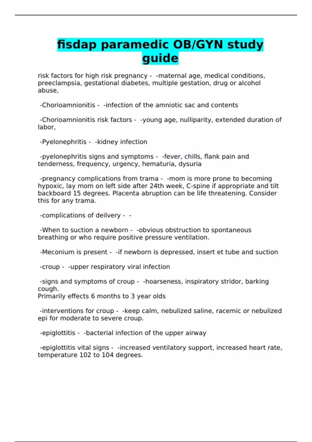 fisdap paramedic obgyn study guide