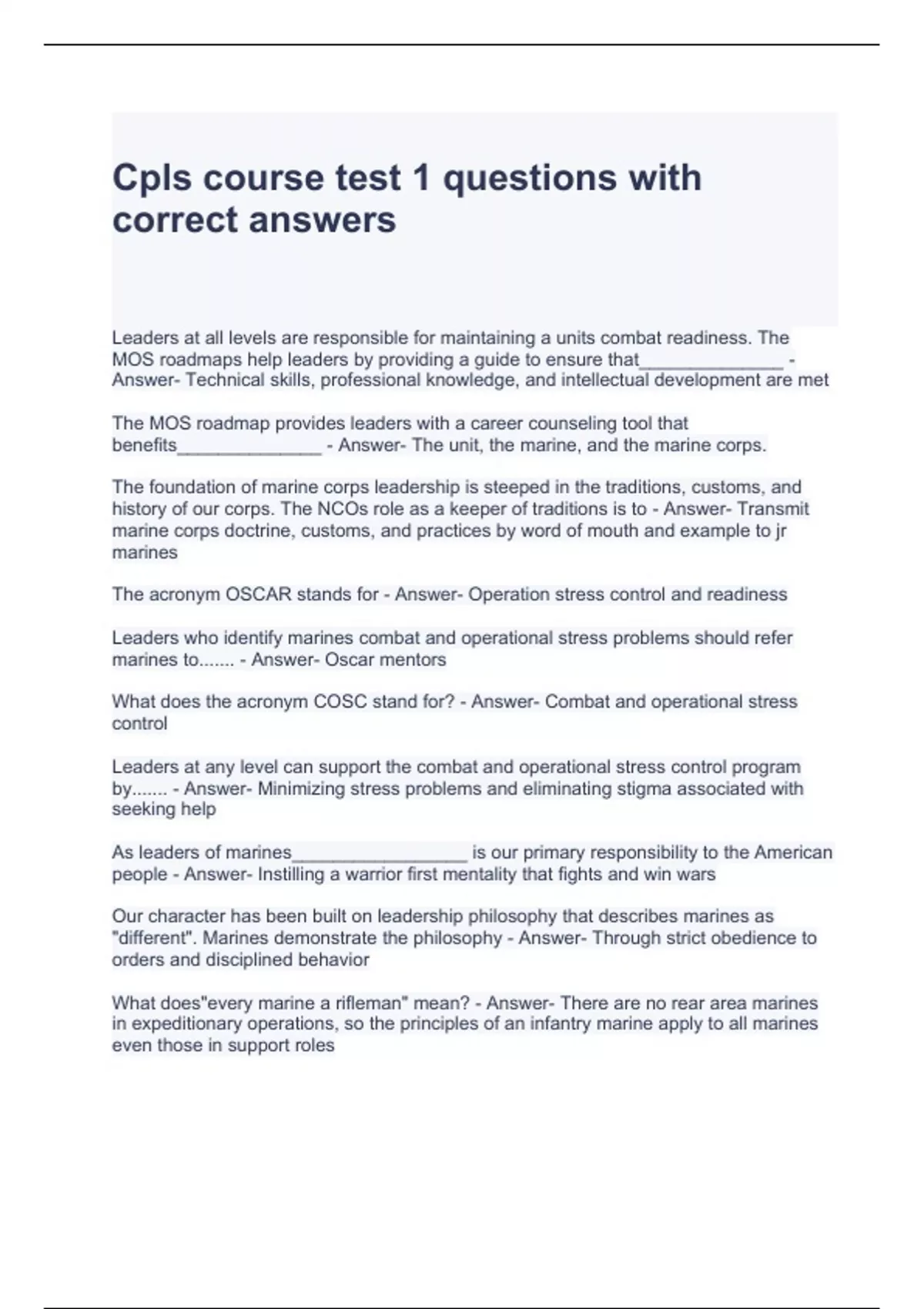 Corporal s Course Exam Bundle (Full pack solution) Graded A