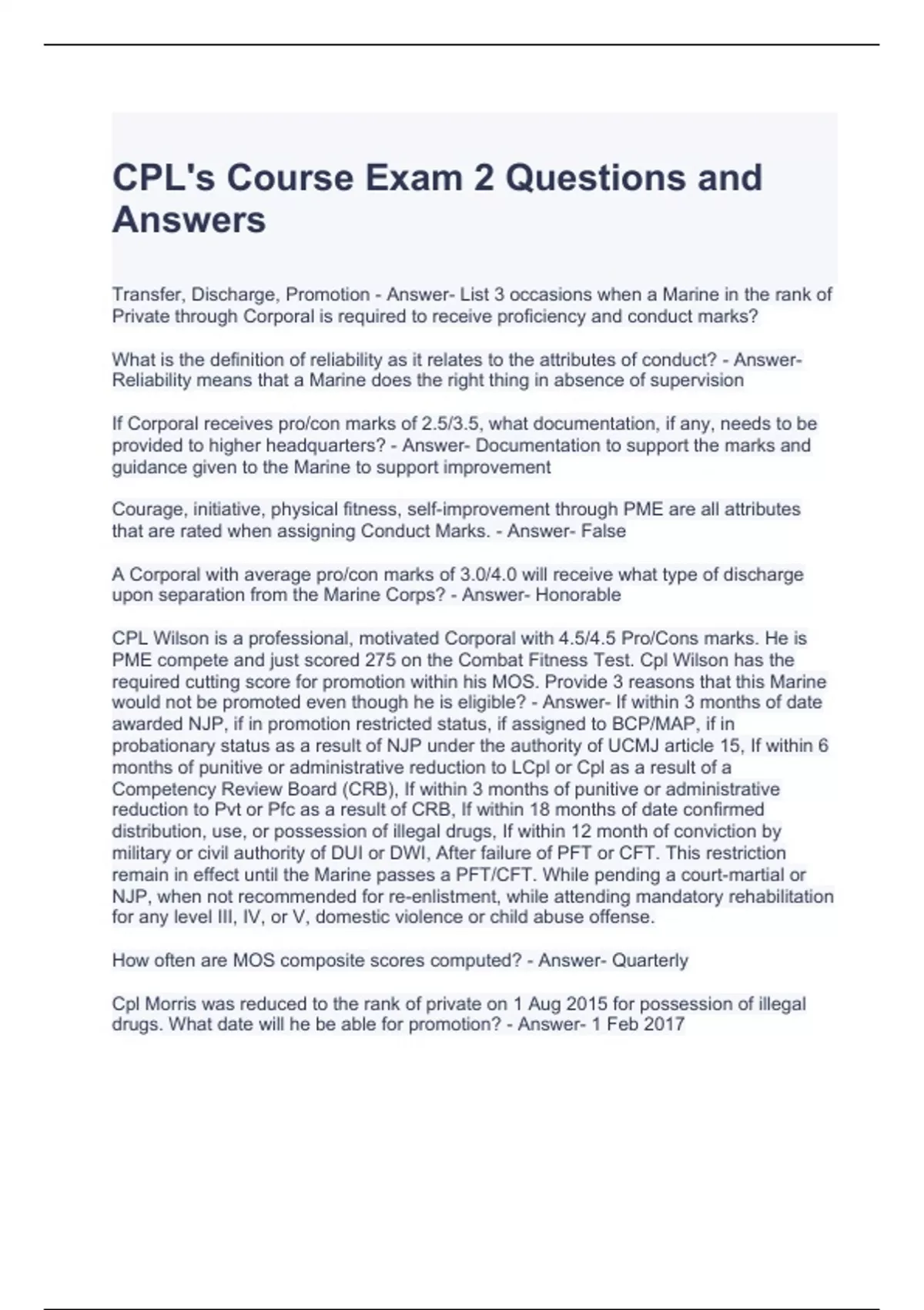 Corporal s Course Exam Bundle (Full pack solution) Graded A