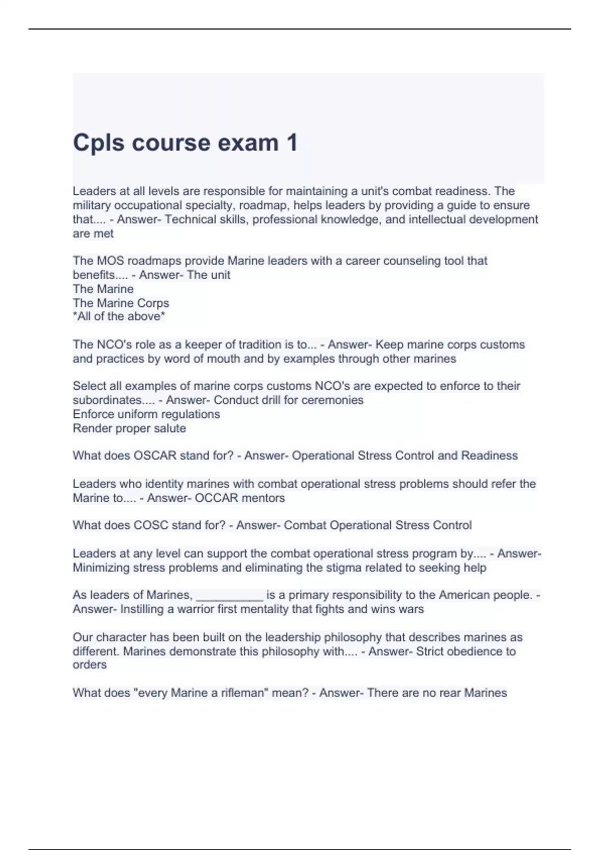 Corporal s Course Exam Bundle (Full pack solution) Graded A