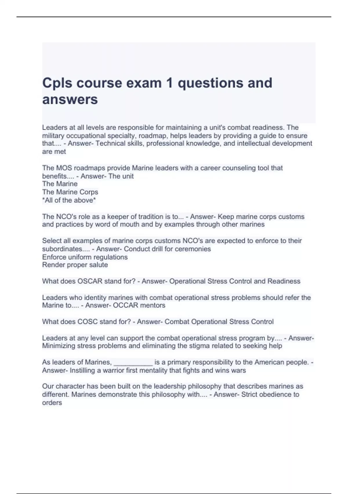 cpls course exam 1 questions and answers