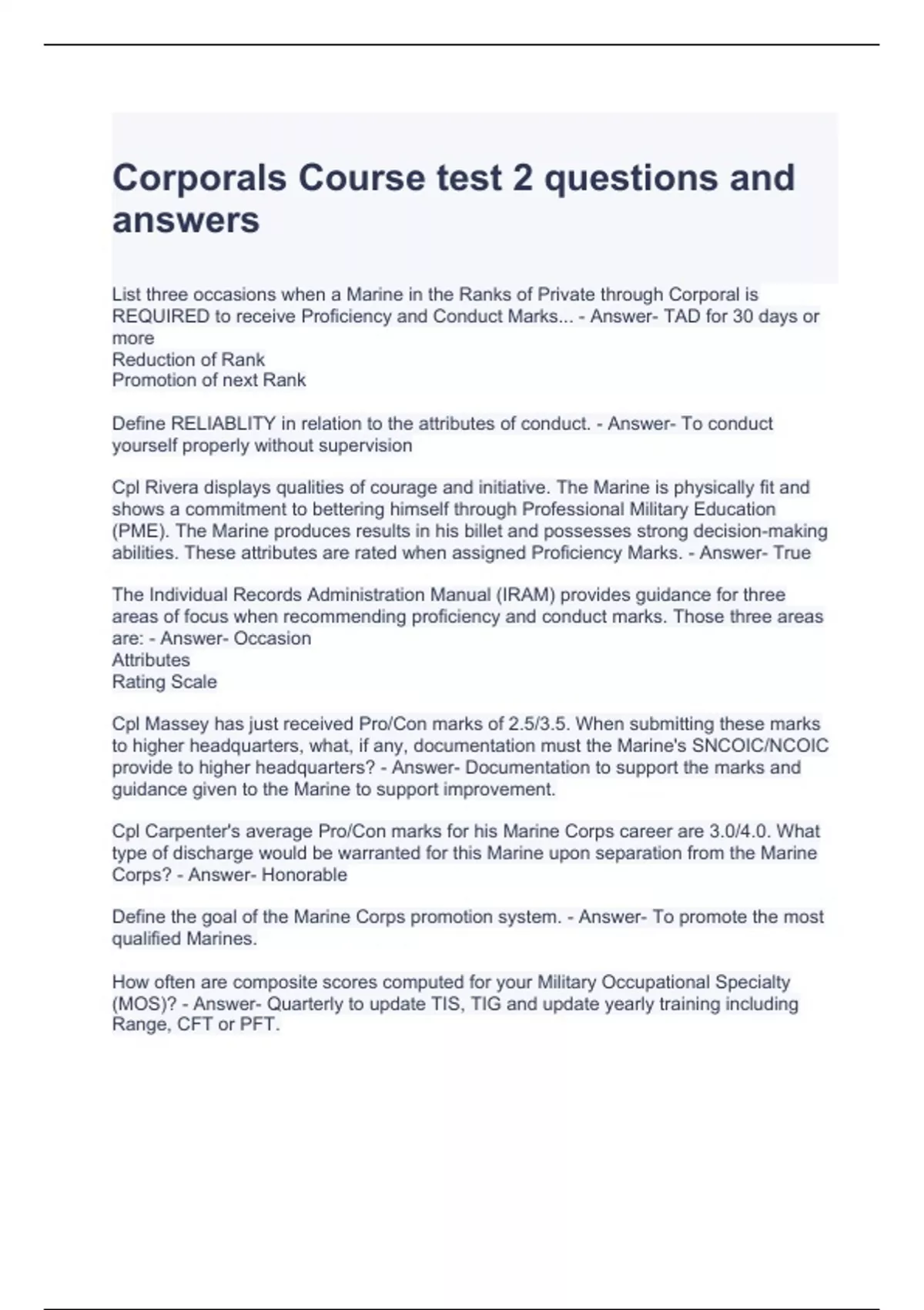 Corporal s Course Exam Bundle (Full pack solution) Graded A