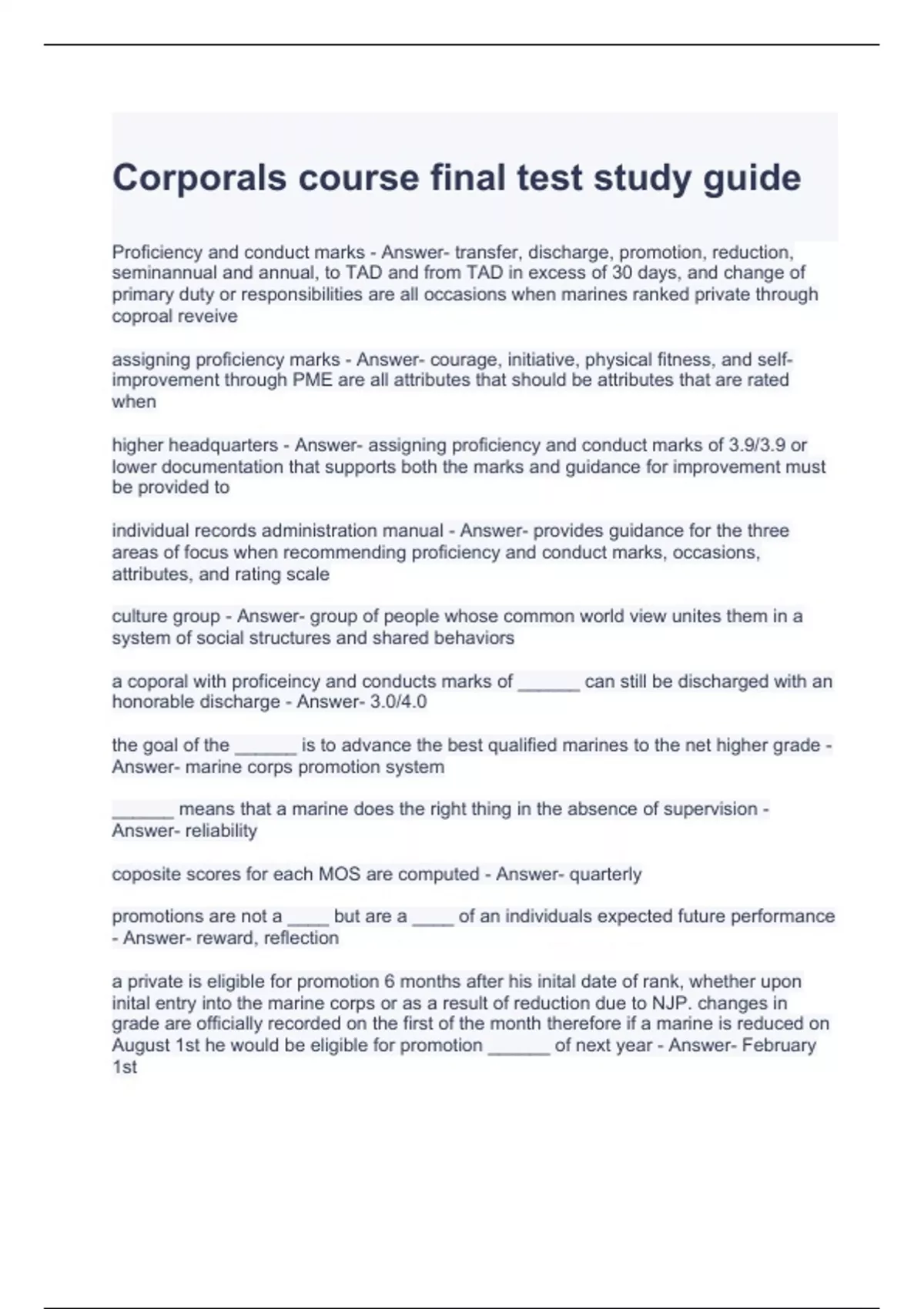 Corporal s Course Exam Bundle (Full pack solution) Graded A